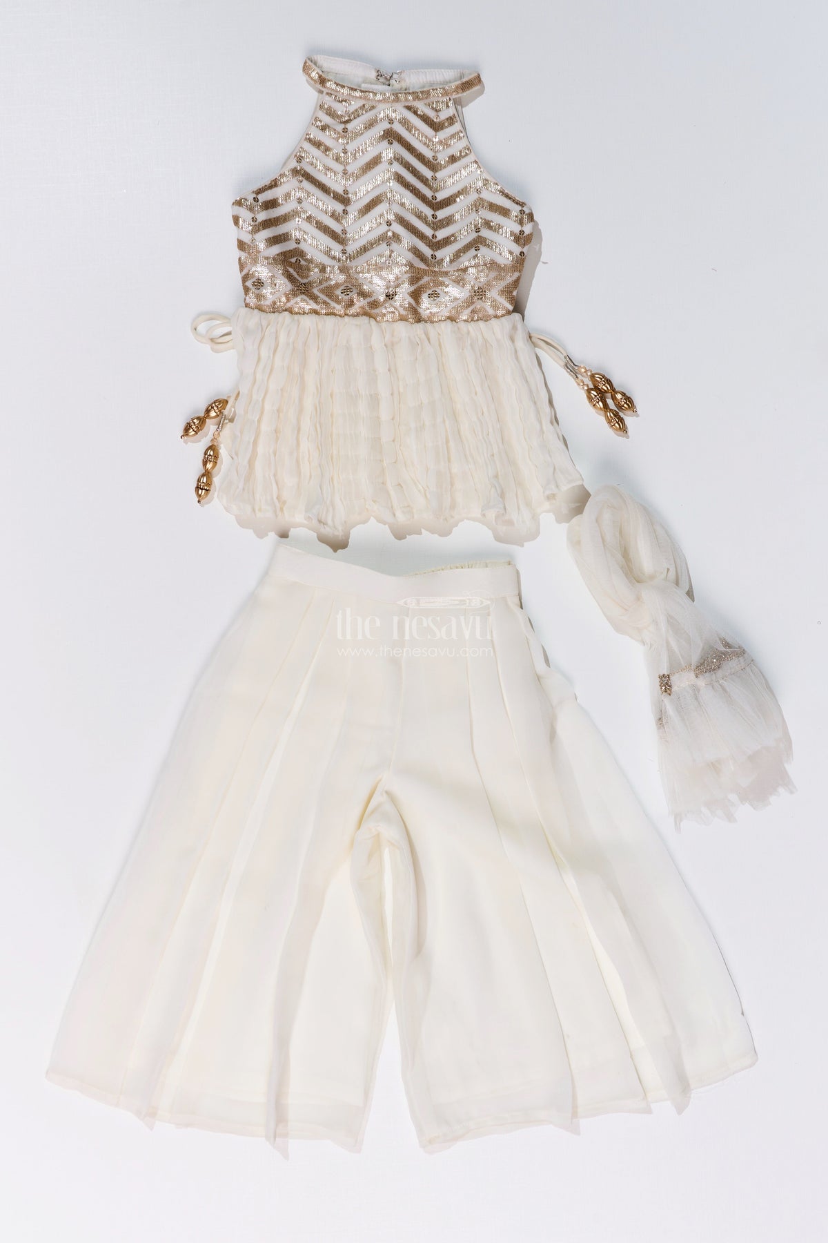 The Nesavu Girls Sharara / Plazo Set Elegant Plazo Traditional Dress for Girls with Georgette Embroidery and Sequin Detailing Nesavu 16 (1Y) / Cream GPS538B-16 Elegant Plazo Traditional Dress Girls Georgette Embroidery Sequin Detailing | The Nesavu