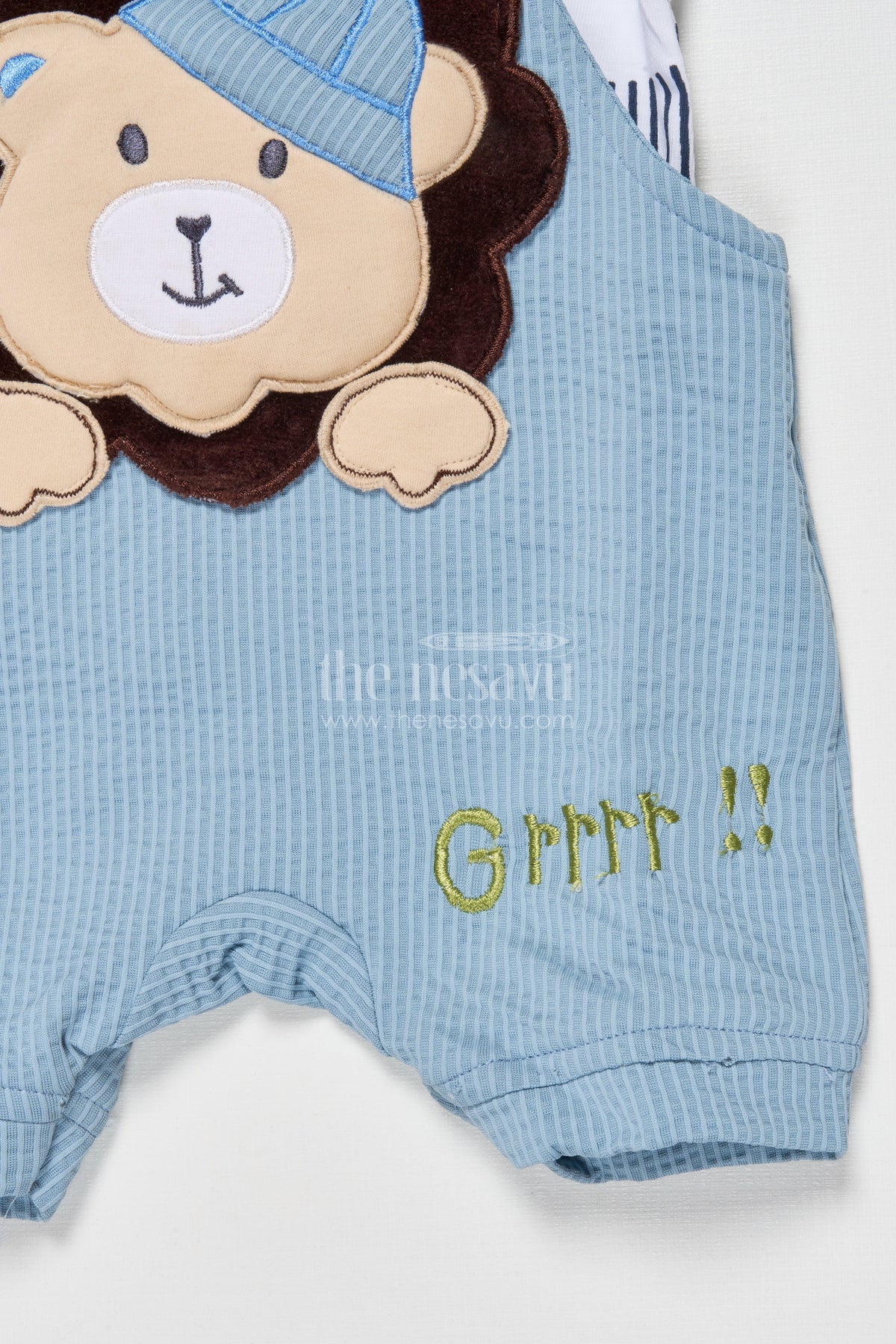 The Nesavu Baby Dungarees Baby Dungaree Set with Embroidered Bear Motif for Daily Cuteness Nesavu 14 (6M) / Blue BCS519A-14 Nesavu embroidered baby dungaree cotton set bear motif  perfect everyday outings play
