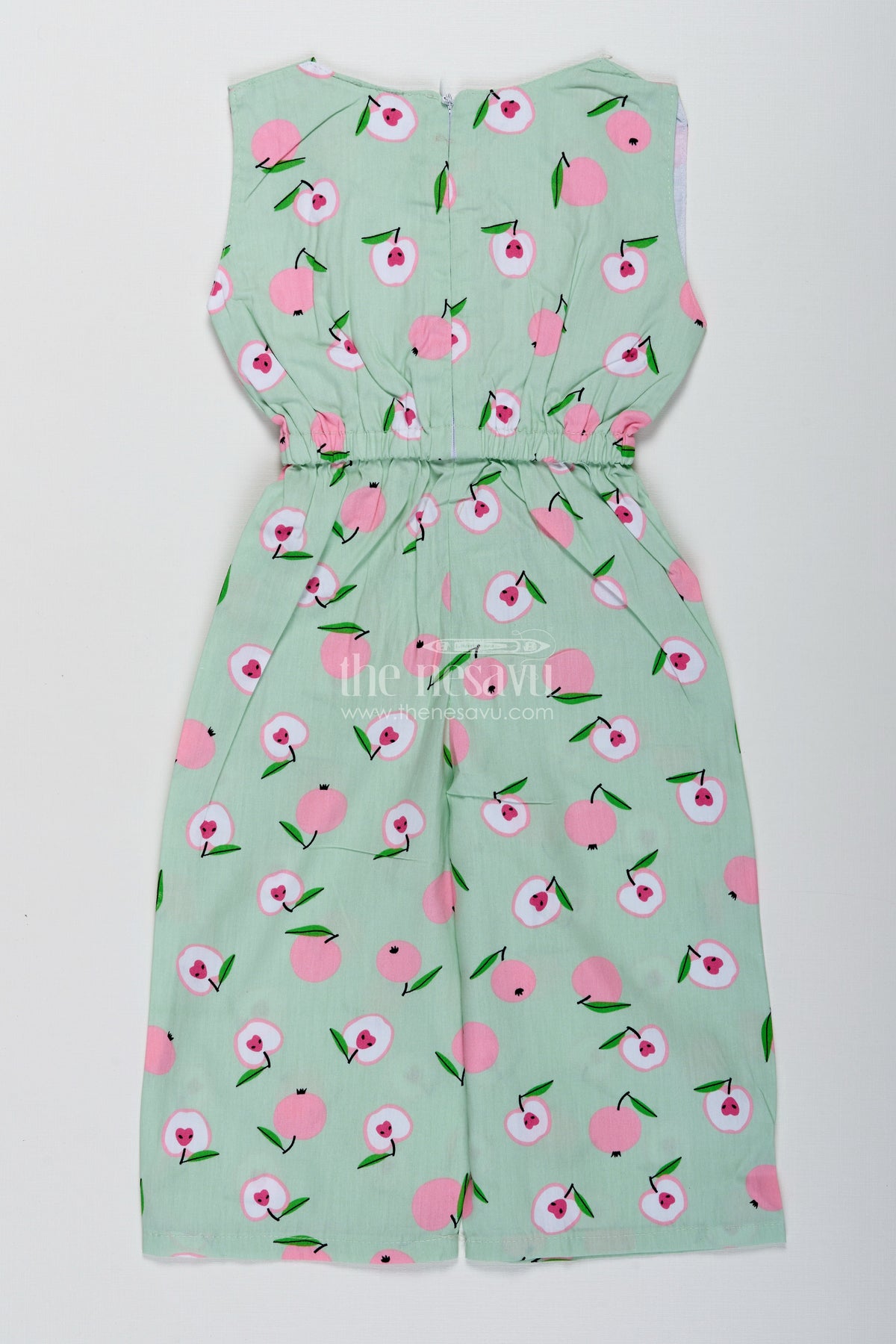 - Light green cotton jumpsuit for girls with playful pink floral prints