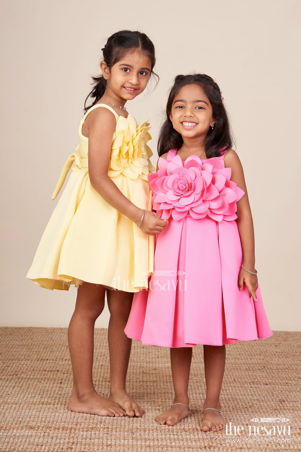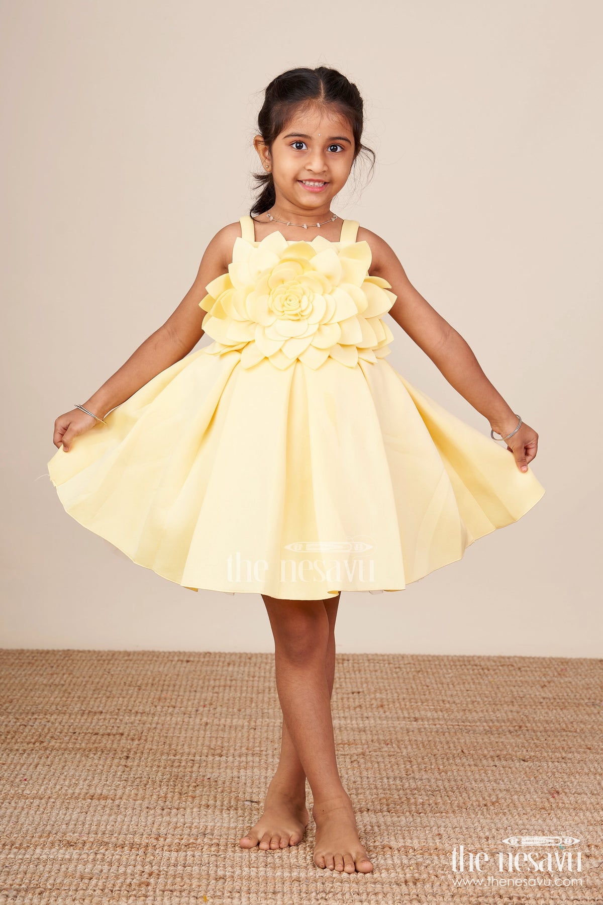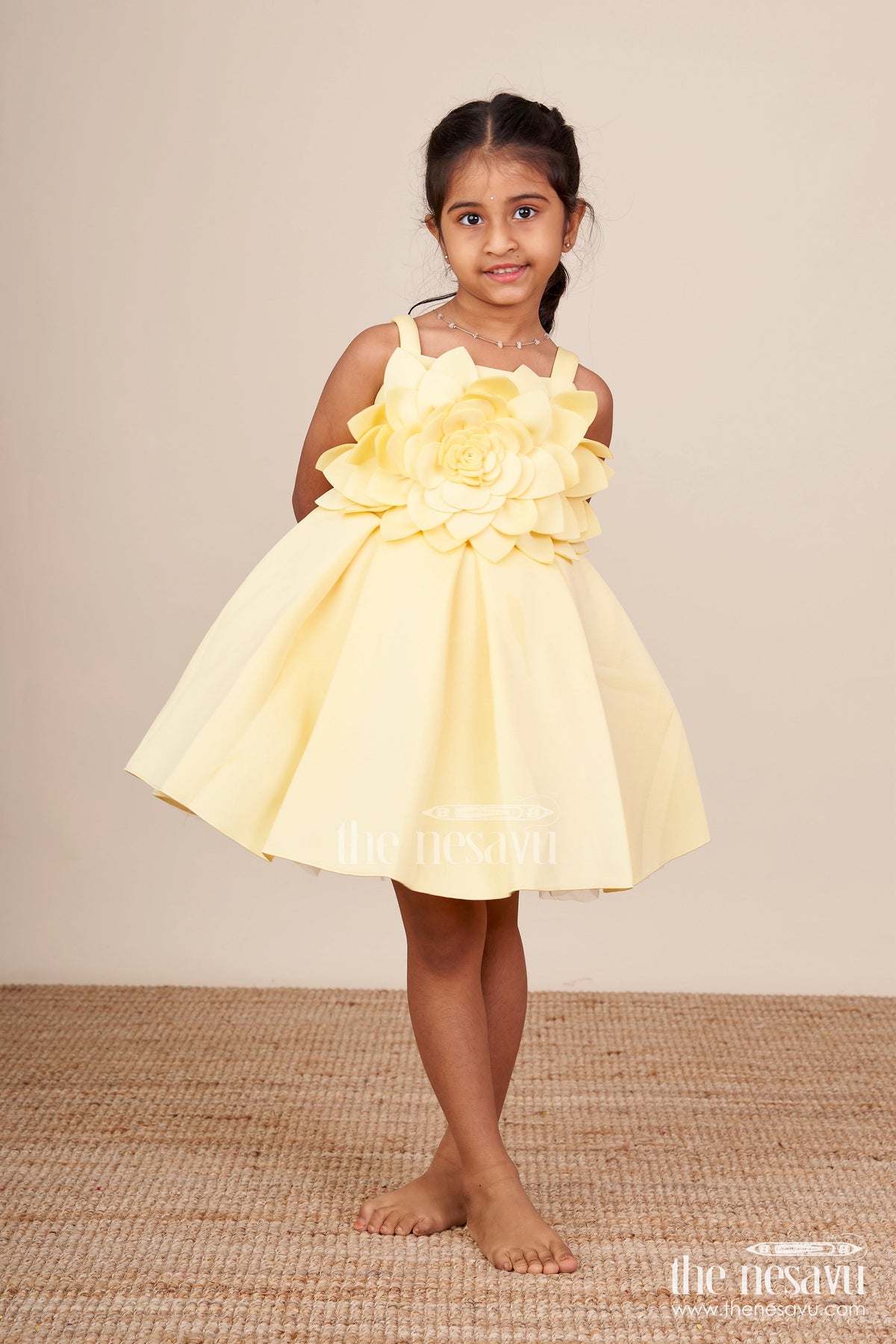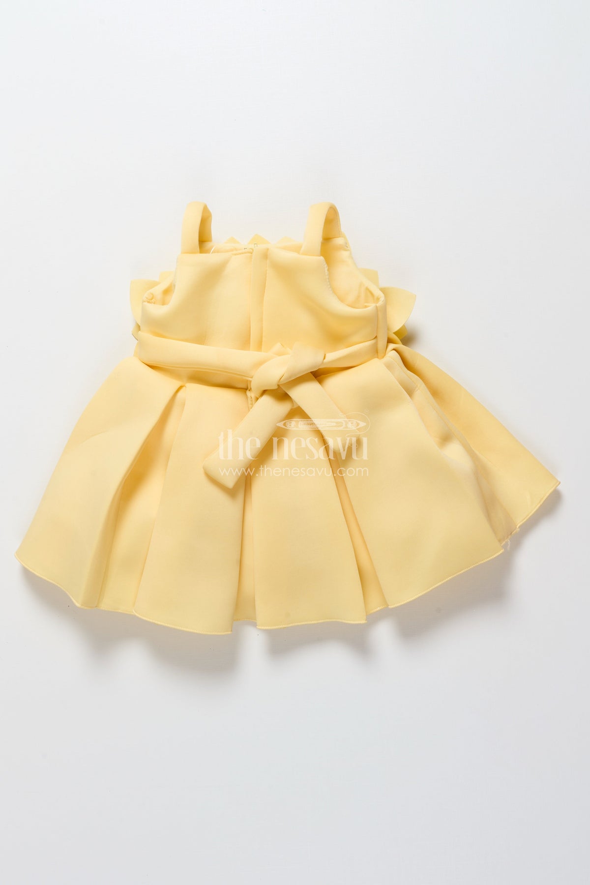 The Nesavu Girls Fancy Party Frock Baby Girl Scuba Frock for Birthday Parties and Playful Twirls Nesavu 16 (1Y) / Yellow PF252A-16 Nesavu baby girl scuba fabric frock  perfect birthdays parties everyday twirls