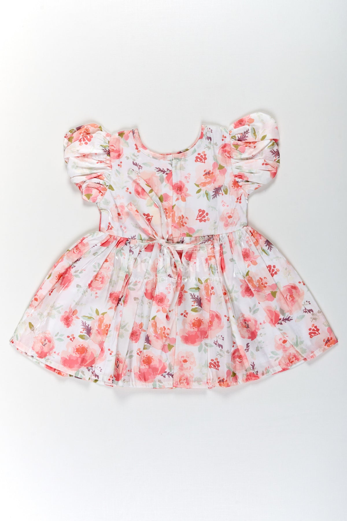 Dress your little princess in this elegant floral frock dress, designed to bring charm and comfort together. Made from luxurious Glaza Satin Organza, this dress features a soft pastel floral print with ruffled puff sleeves for a timeless look. The waist is adorned with a large floral appliqué and satin sash, adding a touch of sophistication. The pleated skirt enhances its twirl-worthy appeal, making it perfect for birthdays, weddings, and special occasions. Lightweight and easy to wear, this dress ensures all-day comfort while keeping your baby girl looking adorable.
