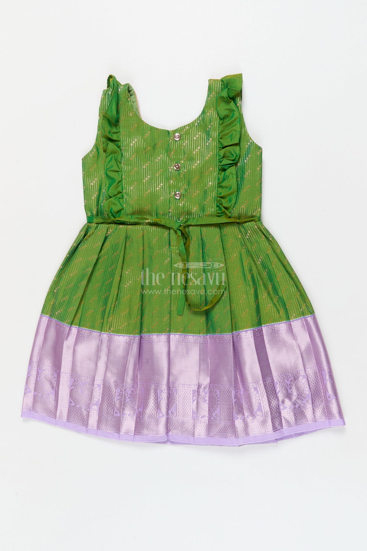 The Nesavu Girls Kanchi Silk Frock Baby Girl Kanchi Silk Frock for Poojas and Traditional Day Celebrations Nesavu Nesavu baby girl Kanchi silk frock for traditional school days, poojas, and ethnic family events