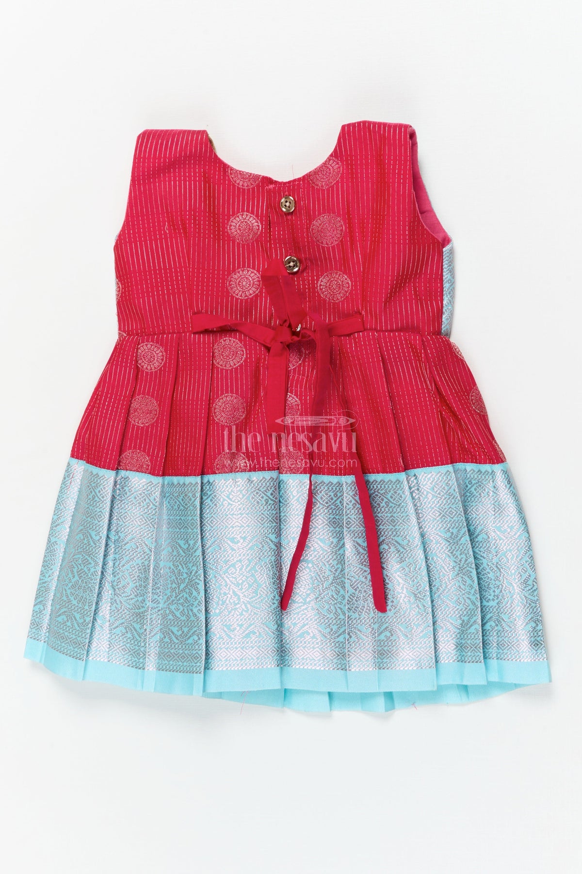 The Nesavu Girls Kanchi Silk Frock Baby Girl Silk Frock for Cultural Events and Festive Photo Moments Nesavu 10 (NB) / Red / Style 3 KSF030AC-10 Nesavu baby girl silk frock with zari border and tie-up overlay for festive family occasions