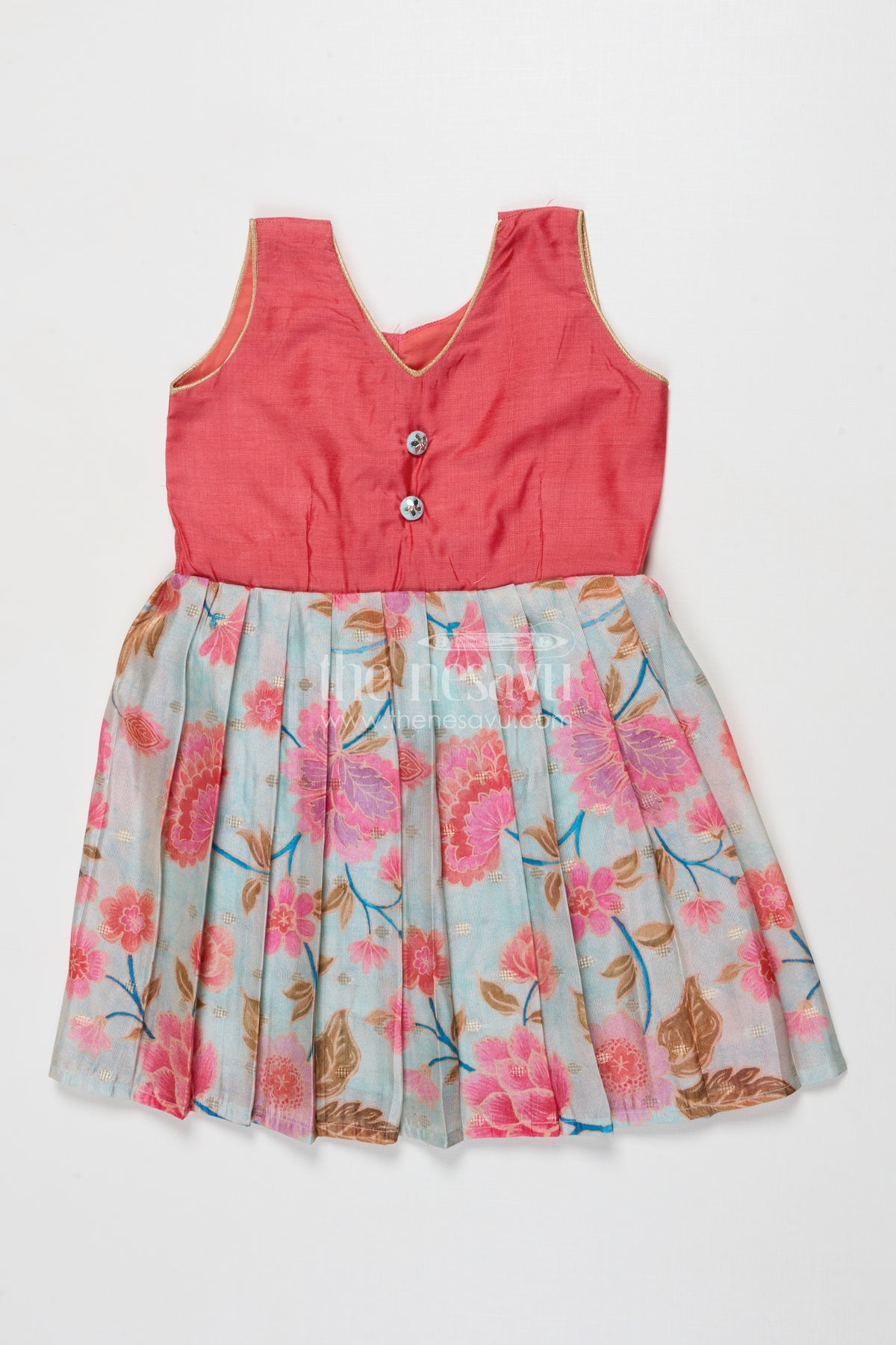 - Design: Digital floral print, Pleated skirt, Contrast yoke