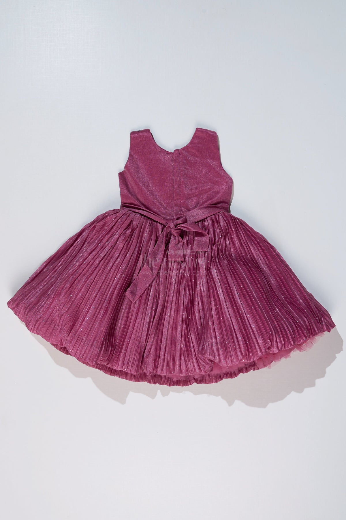 This breathtaking full frock for reception is crafted for elegance and charm. The deep wine-red blended silk fabric is adorned with intricate embroidery and floral embellishments, creating a truly festive appeal. The pleated flared skirt adds volume, while the matching sequin-embellished jacket with dramatic puff sleeves enhances its grandeur. Designed for comfort and luxury, this frock is perfect for receptions, birthdays, and special occasions where your little girl can dazzle.