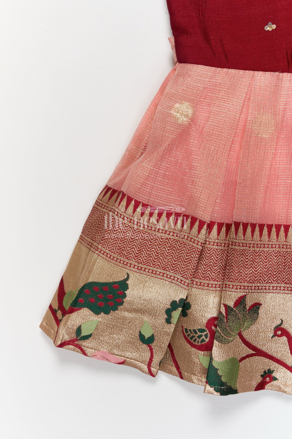 The Nesavu Silk Party Frock Silk Party Frock for Baby Girls for Birthday and Traditional Events Nesavu 16 (1Y) / Peach / Silk Blend SF1118A-16 Nesavu silk frock for baby girls with traditional woven pleats and floral embroidery