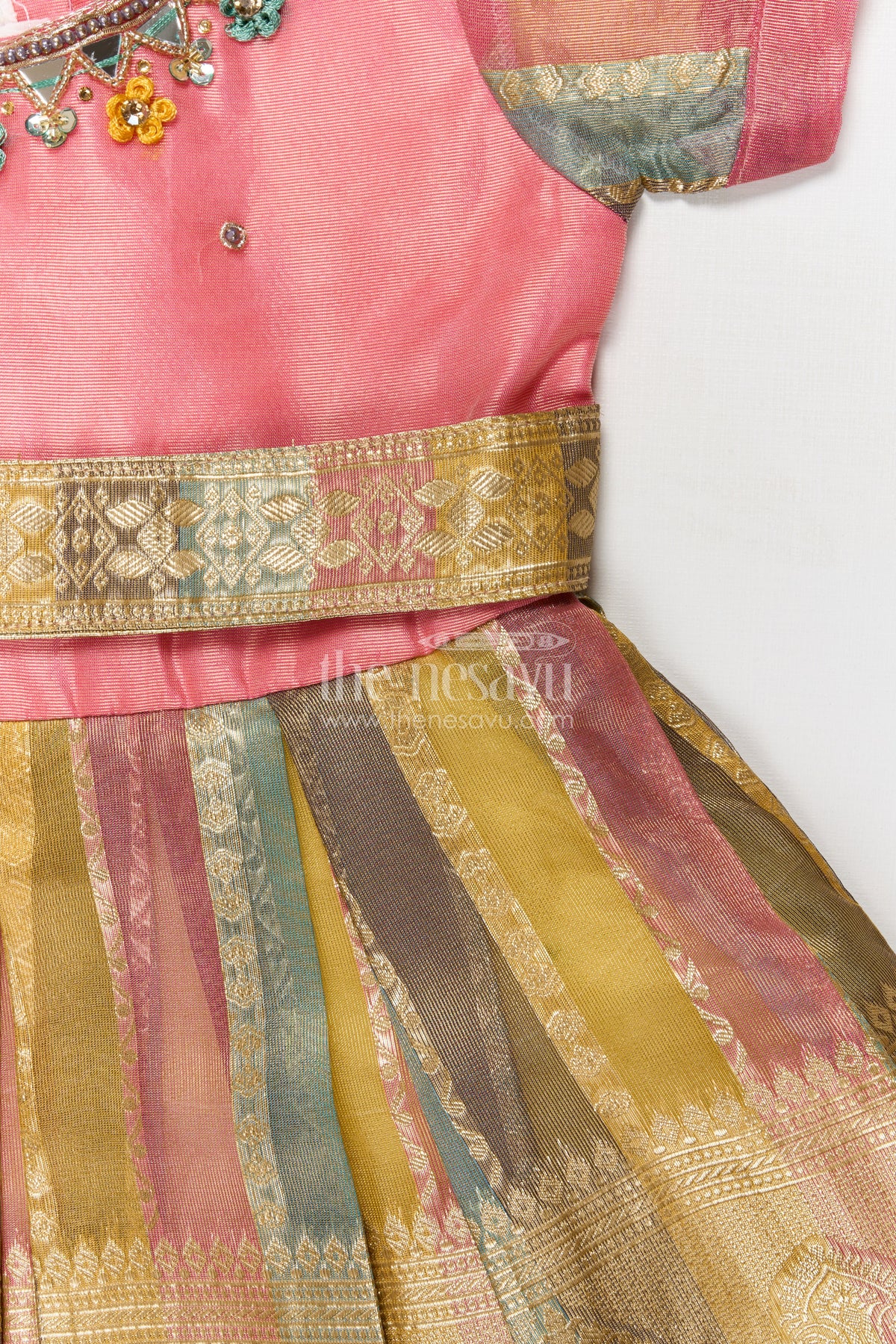 - Do not iron on zari; if needed, iron inside out
