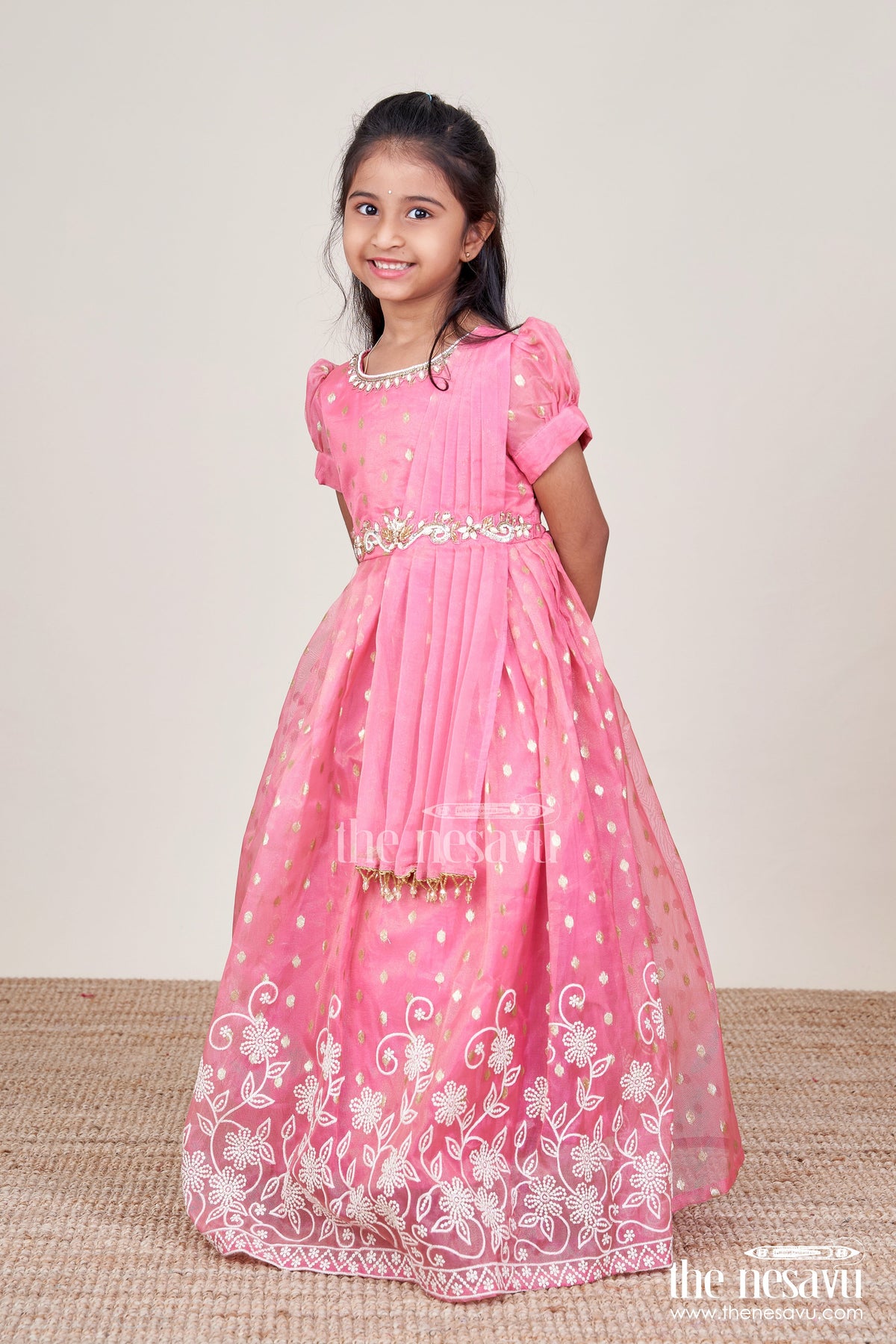 - This girls silk gown is made from fine kora tissue silk with delicate thread embroidery
