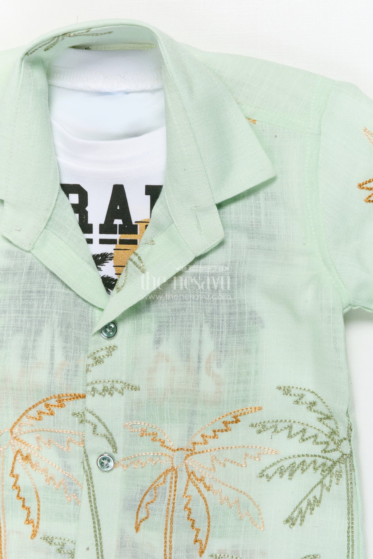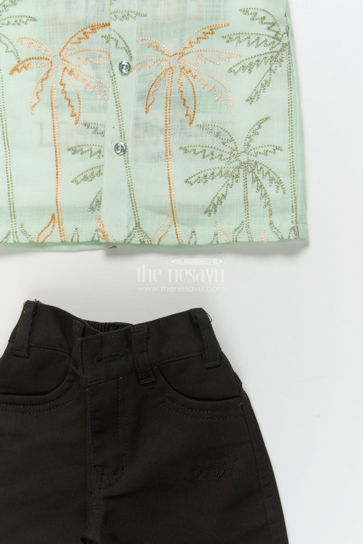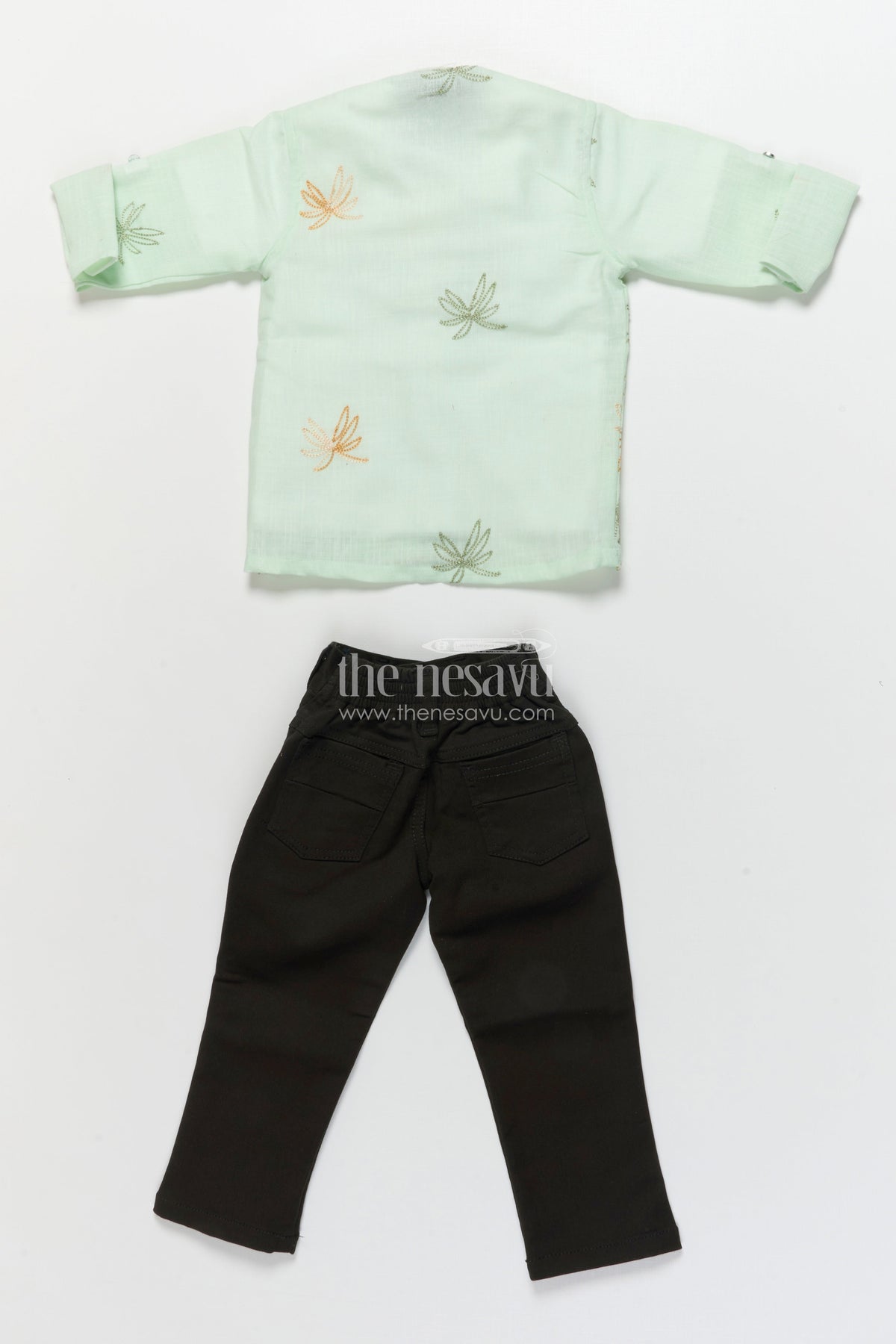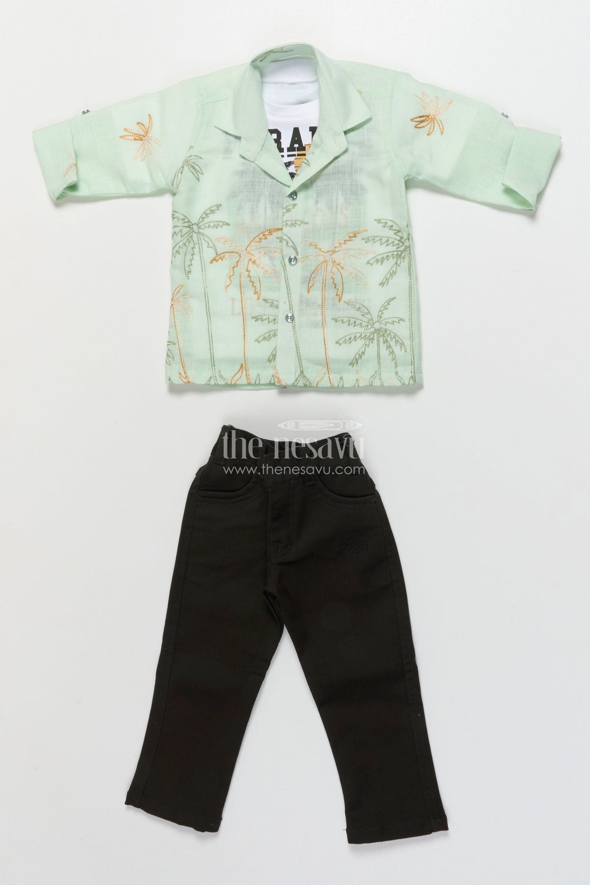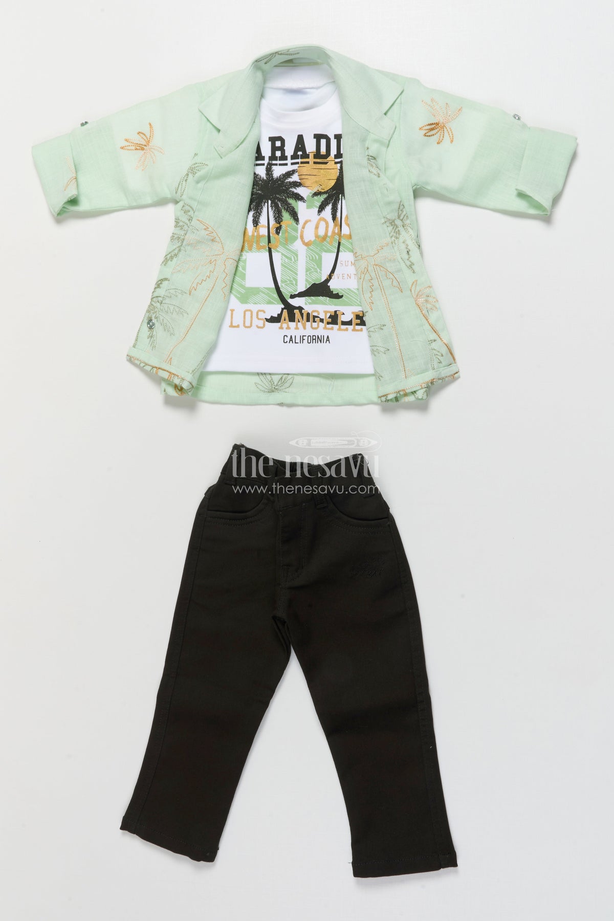 The Nesavu Boys Casual Set Boys Casual Blazer Set for Outings and Everyday Dressing Nesavu 16 (1Y) / Green BCS454B-16 Nesavu boys cotton casual blazer set embroidered palm shirt inner tee combo