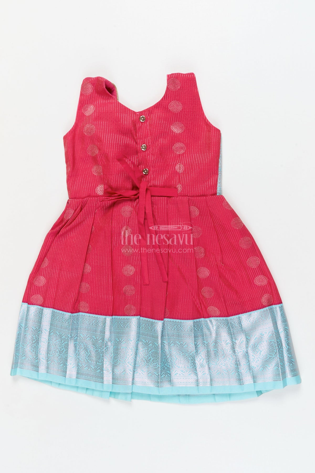 The Nesavu Girls Kanchi Silk Frock Baby Girl Silk Frock for Birthdays and Traditional Celebrations Nesavu 20 (3Y) / Red / Style 2 KSF030BB-20 Nesavu baby girl silk frock with zari border and overlay for birthdays and festive events