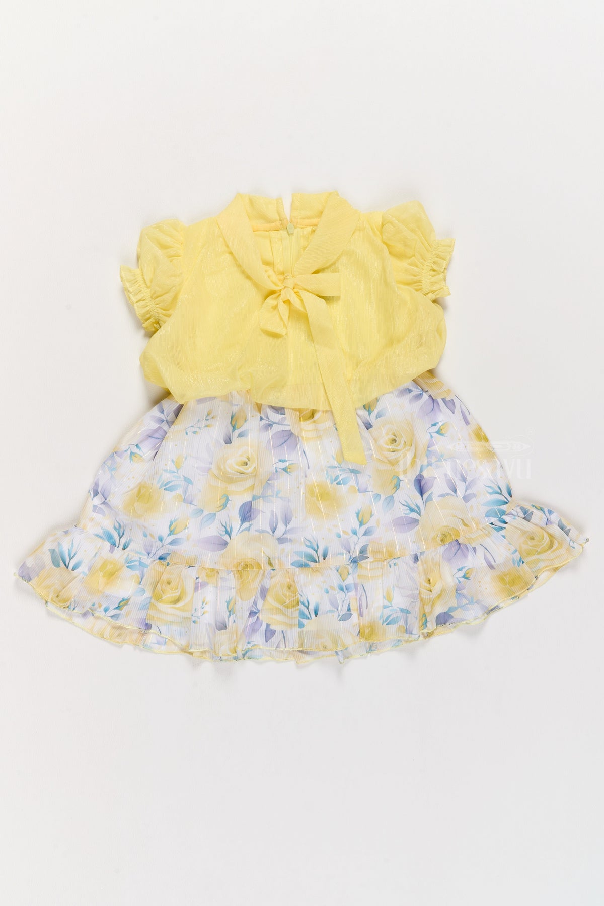 This girls chiffon gown is a stylish and elegant choice for special occasions, featuring a vibrant yellow puff-sleeve top paired with a beautifully printed chiffon skirt. The gown showcases exquisite floral patterns in soft pastel hues, exuding a playful yet sophisticated charm. Perfect for birthday parties, family events, or festive celebrations, this dress offers unmatched comfort with its lightweight and breathable chiffon fabric. The top is adorned with a delicate bow detail, adding a cute finishing touch. The flowy silhouette of the gown allows easy movement, making it an ideal outfit for your little one to shine at any gathering.