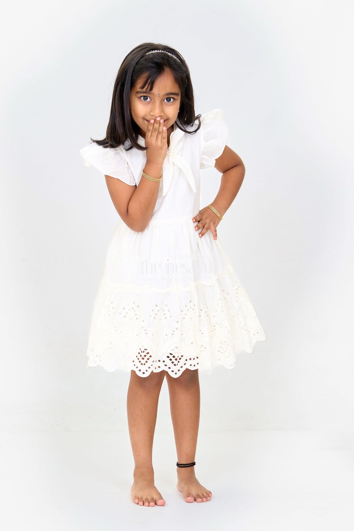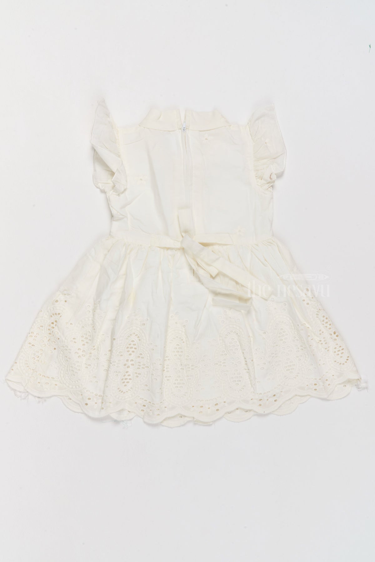 This Cinderella fancy cotton dress for girls brings a touch of fairytale magic to your little one wardrobe. Featuring a tiered skirt with delicate eyelet embroidery and a charming bow at the neckline, this dress is perfect for creating memorable moments. The soft cotton fabric ensures all-day comfort, while flutter sleeves add a playful elegance. Designed with a timeless cream color, this dress is ideal for special occasions like birthday parties, family gatherings, or casual outings. Easy to wear with a back zip closure, this dress is a must-have for every princess-in-the-making.