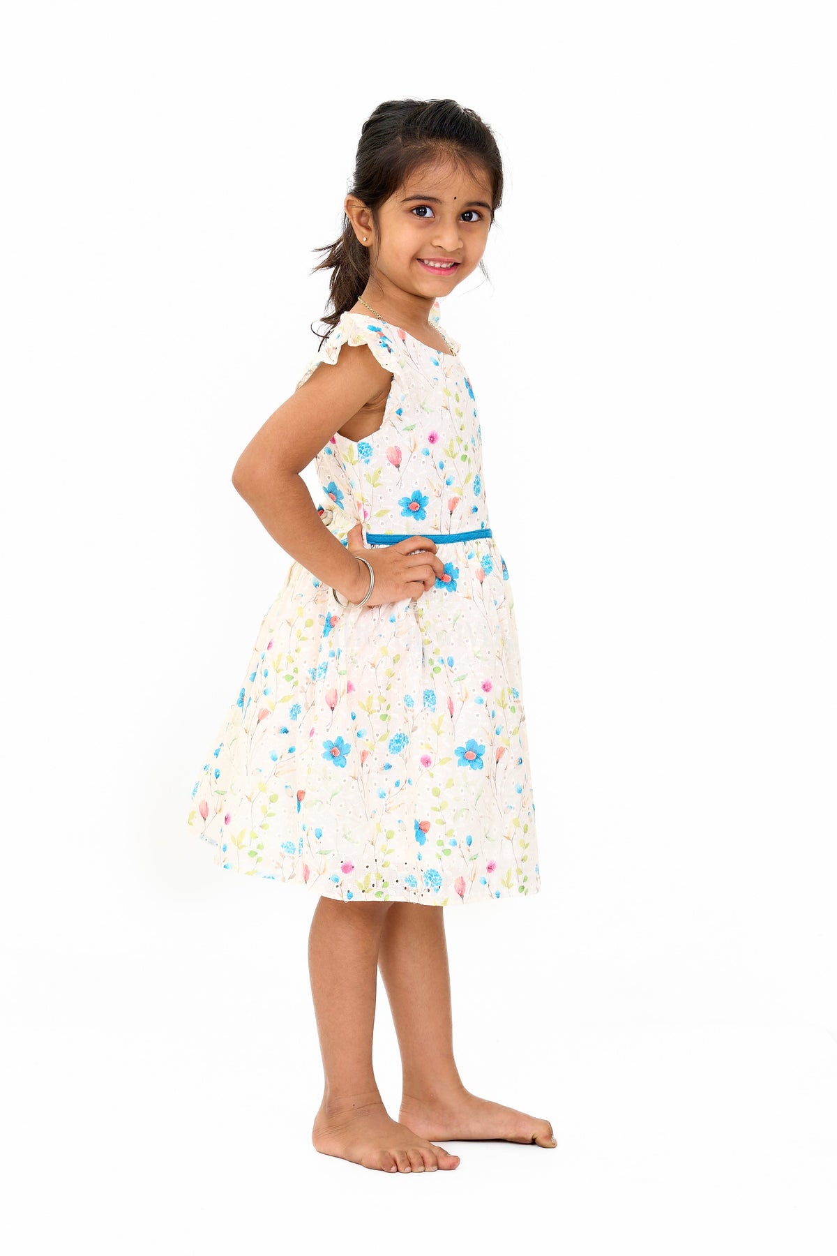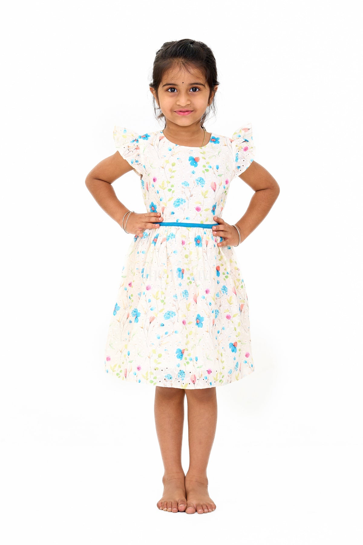 This girls cotton fancy frock is an elegant choice for your little one’s wardrobe, featuring a beautiful floral embroidery design on a soft, breathable cotton fabric. The frock is adorned with delicate flutter sleeves and a contrasting blue waistband, adding a touch of charm to its timeless design. The lightweight fabric ensures maximum comfort, making it perfect for birthday parties, family gatherings, or festive occasions. The flared skirt enhances the frock’s graceful silhouette, while the back zip closure ensures easy wear. This dress is as practical as it is stylish, combining classic elements with modern comfort. Pair it with matching accessories to complete the look for your little princess.
