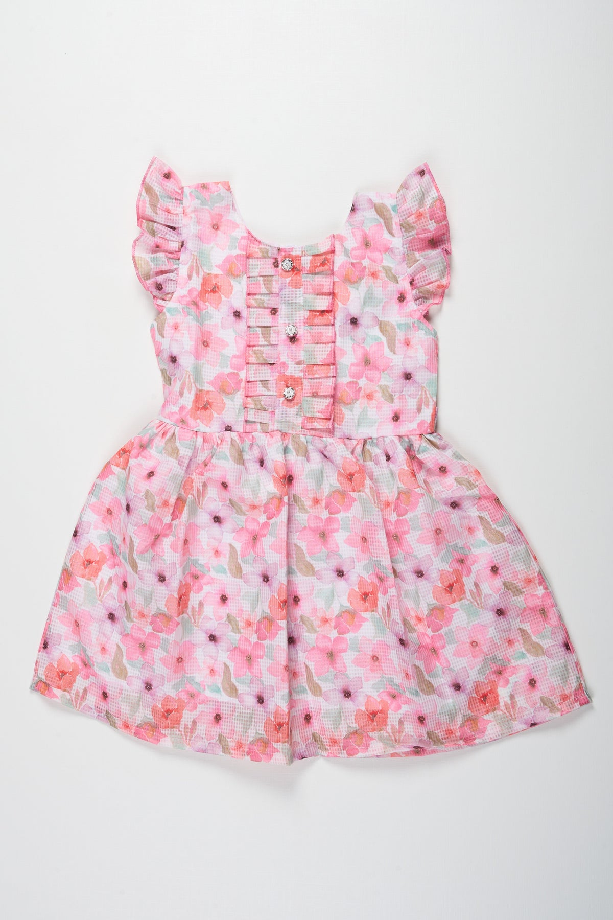 cute frock design comes to life in this sweet and stylish girls cotton frock featuring a soft floral digital print. Made with a cotton blend for breathability and ease of movement, this frock is perfect for playdates and casual outings. The ruffle sleeves and front pleated panel with decorative buttons bring extra charm, while the flared skirt ensures a playful silhouette. Light pink tones are balanced with vibrant flower motifs, creating a cheerful and timeless look. Easy to wash and wear, this frock combines comfort with cuteness—an ideal pick for any young girl’s daily adventures.