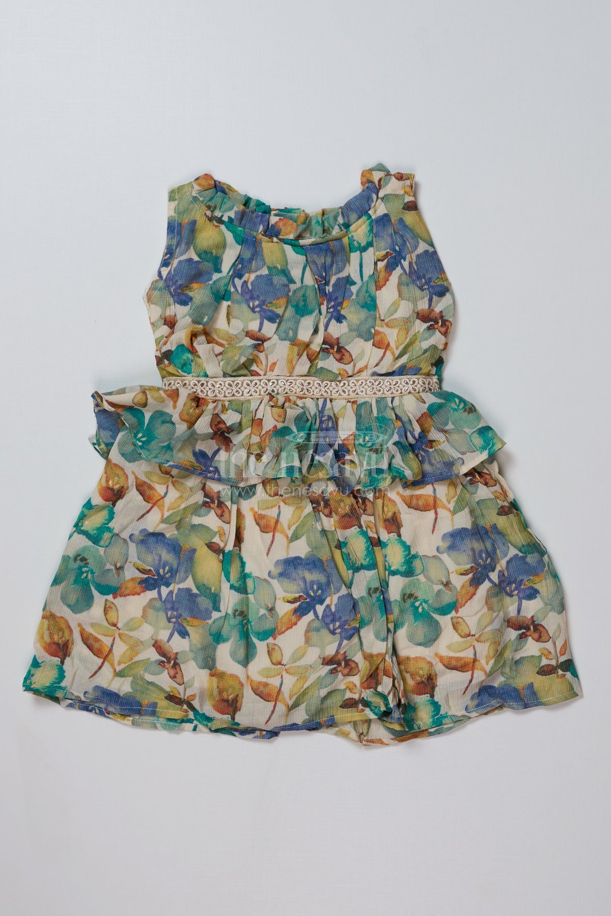 Girls Western Frock Dress in Chiffon Cotton Blend with Floral Prints and Ruffled Waist
