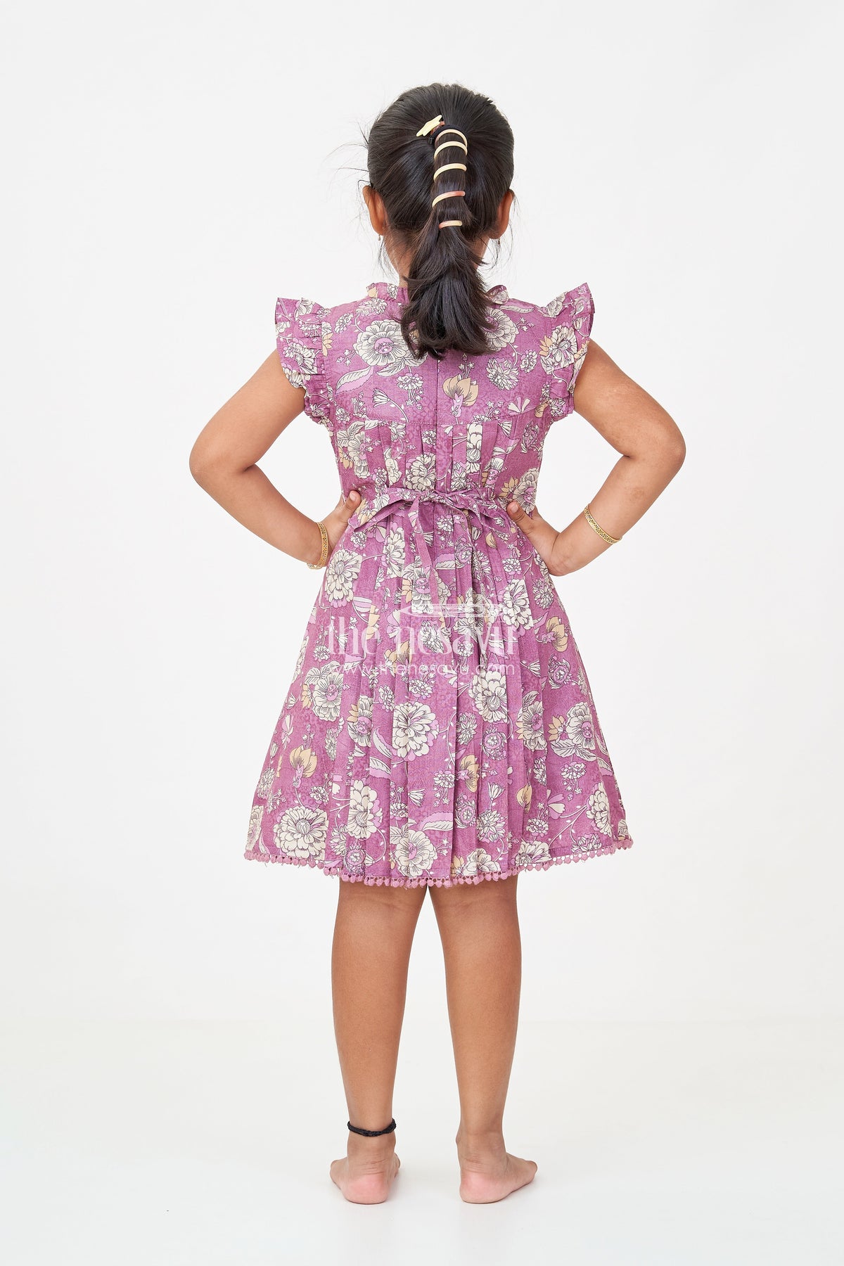 Make everyday feel like a royal occasion with this princess short frock from Nesavu. Crafted from mauve-hued floral printed cotton, this frock features a round embellished neckline, ruffled sleeves, and carefully stitched pleats for graceful flair. It's soft on the skin and stylishly structured, making it perfect for birthday parties, playdates, or family gatherings. Your little one will feel like a princess all day long!