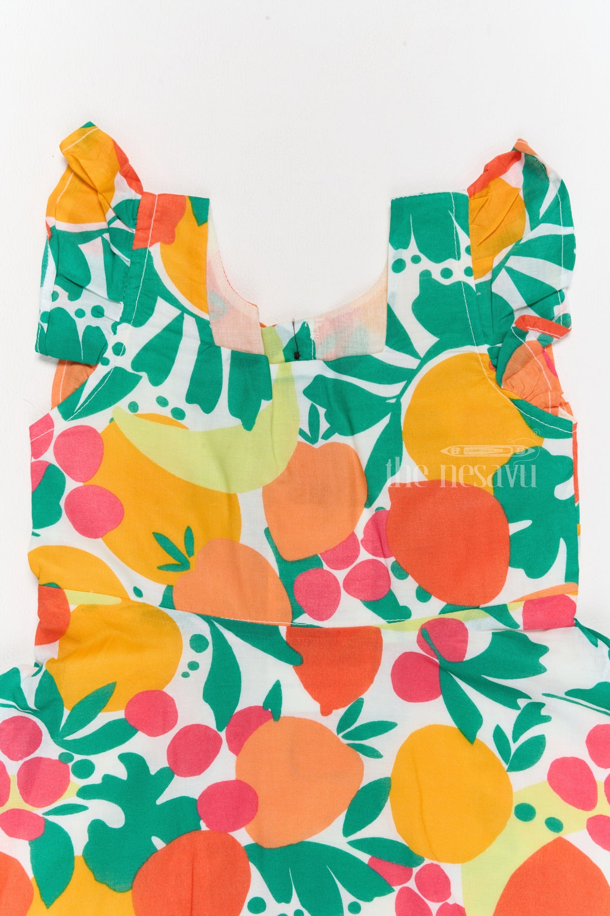 Bring a splash of color to your child’s wardrobe with this Cotton Ki Gown, adorned with a lively fruit-themed print. Designed with playful flutter sleeves and a breezy A-line silhouette, this gown is crafted from high-quality cotton fabric, ensuring comfort and ease of movement. The rich palette of oranges, yellows, greens, and reds creates a cheerful vibe, perfect for brightening up any day. Ideal for family gatherings, outdoor picnics, or festive celebrations, this gown is lightweight, breathable, and stylishly versatile. Its bold design is a charming blend of comfort and personality, making it an everyday favorite for kids.