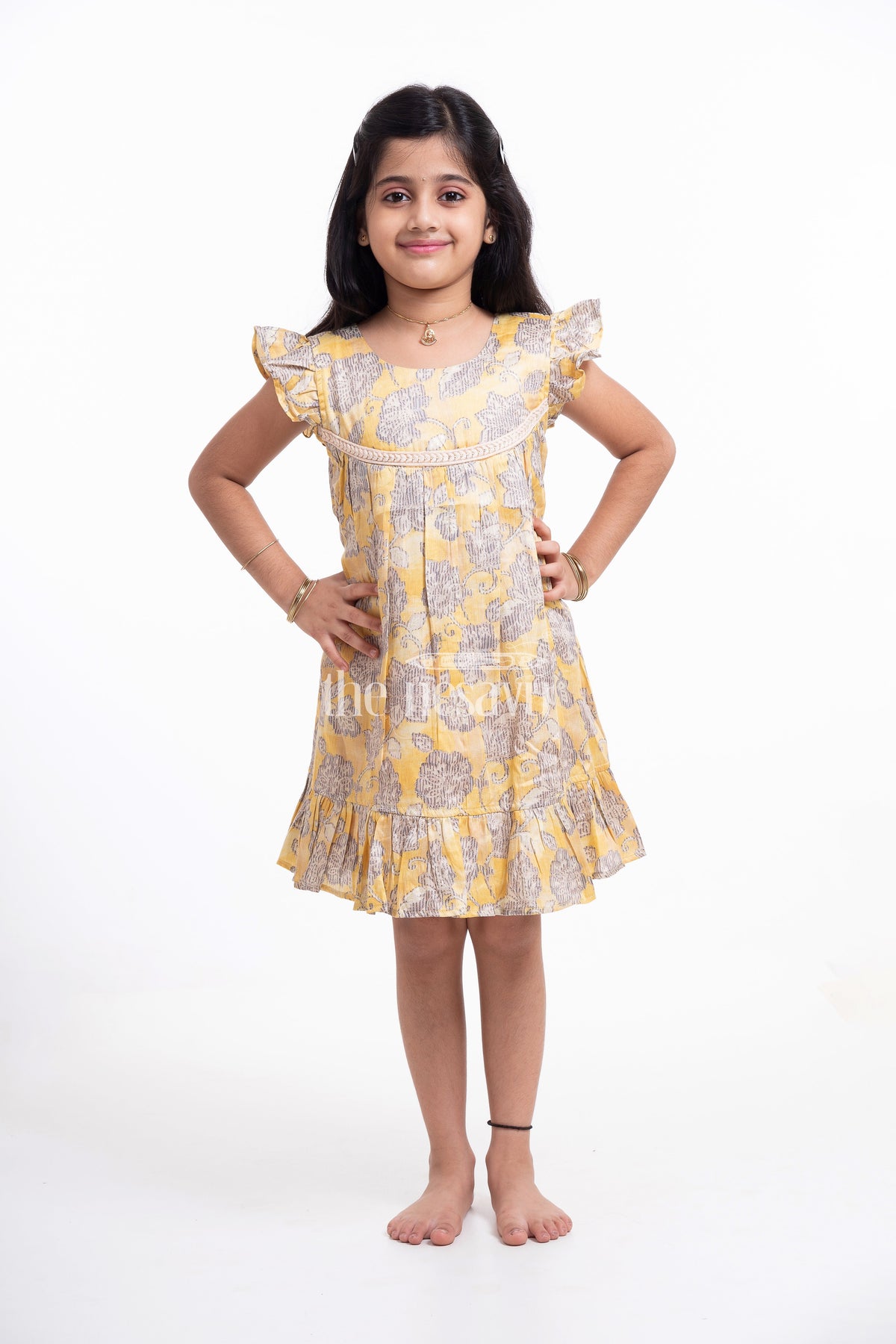 The Nesavu Girls Cotton Frock Yellow Floral Printed Cotton Frock for Girls Nesavu Yellow Floral Printed Cotton Frock for Girls - Cute & Comfortable | The Nesavu