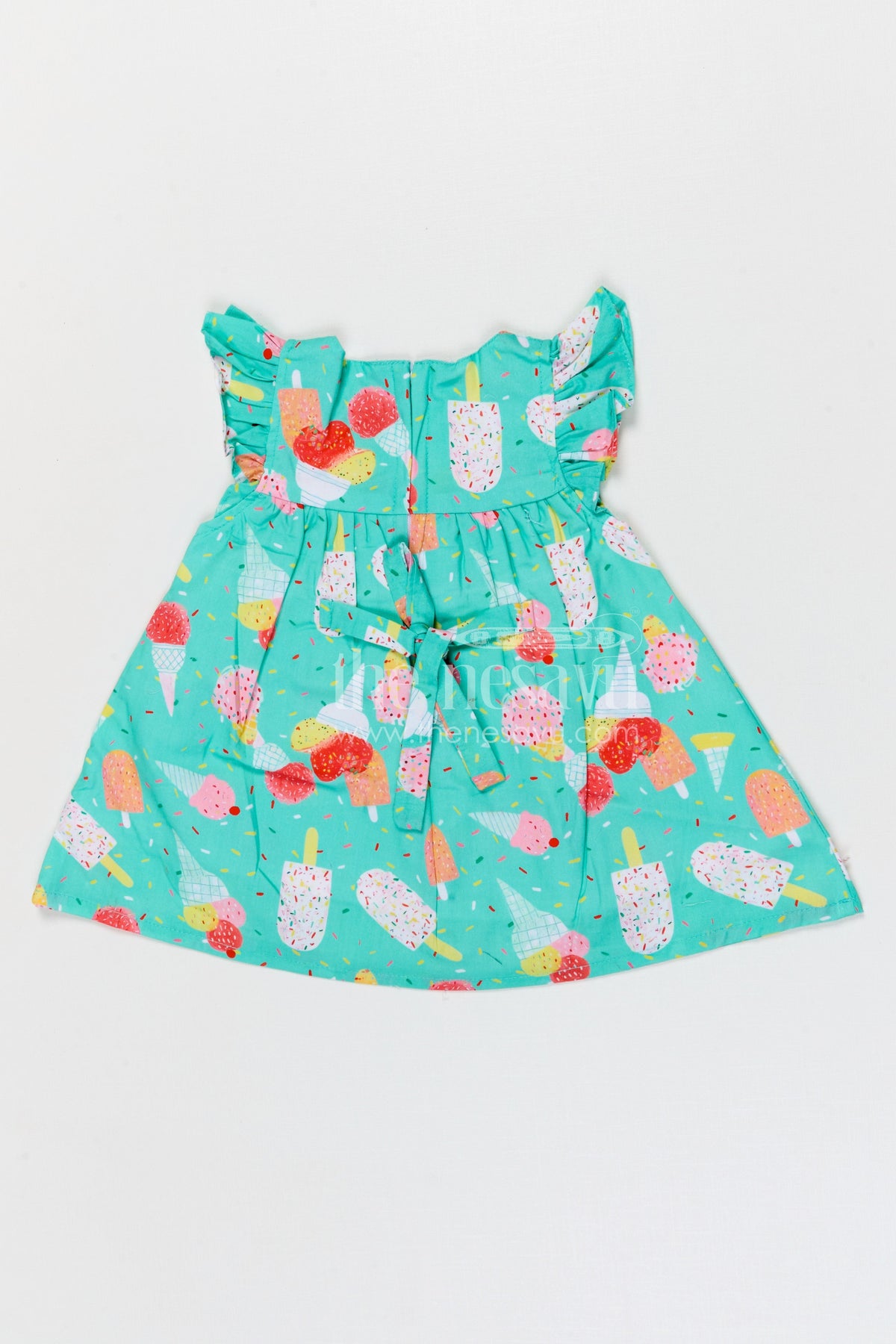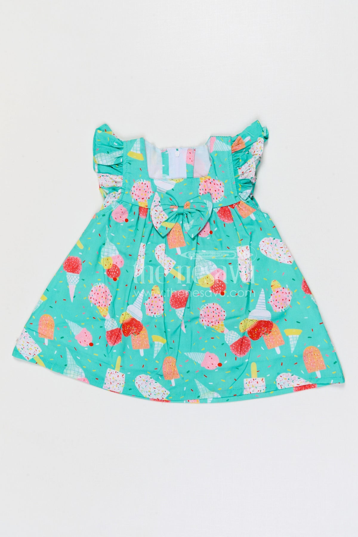 - Design: Ice cream printed baby frock with bow detail