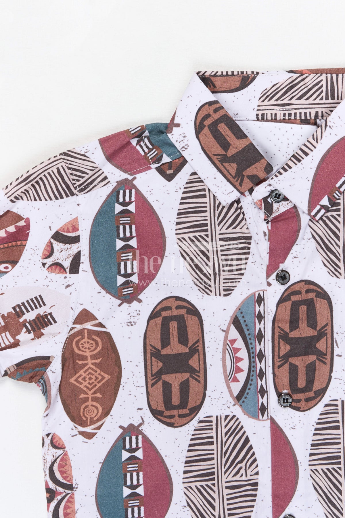 - This boys cotton shirt with geometric digital print is designed to add a stylish modern touch to everyday outfits