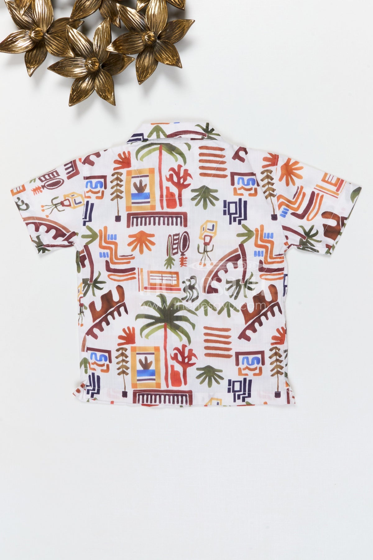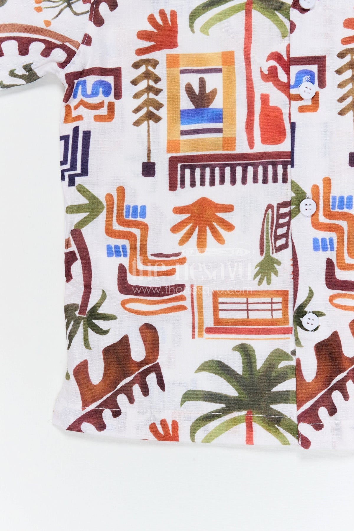 - Design: Tropical themed digital printed cotton shirt