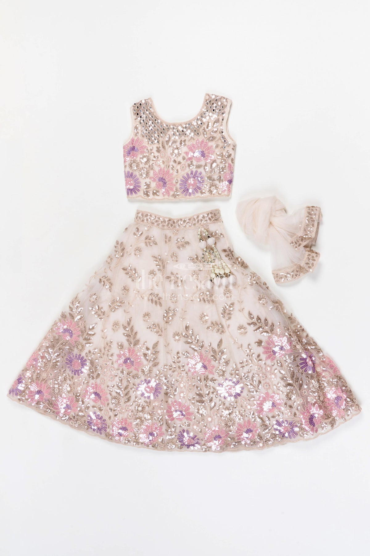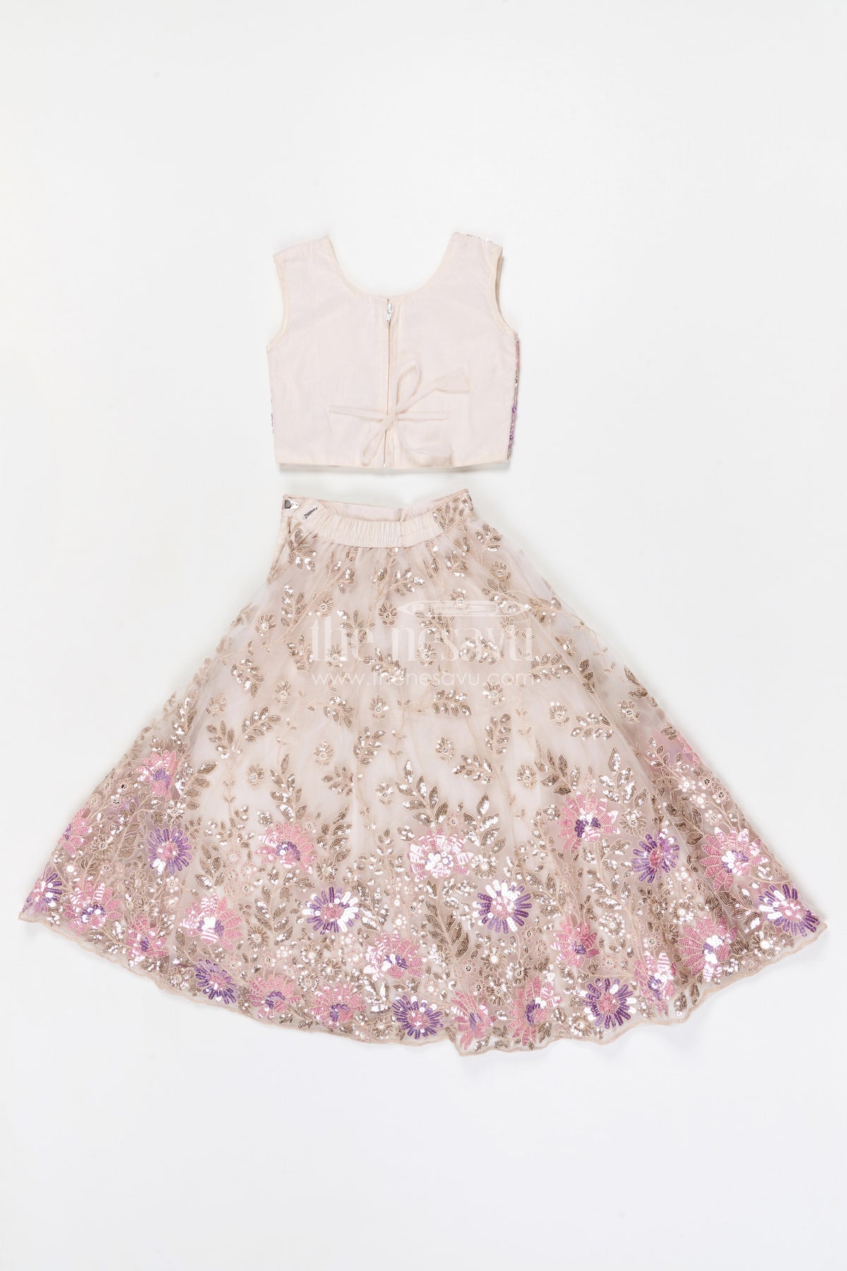 The Nesavu Girls Fancy Lehenga Girls Lehenga Set for Weddings and Grand Festive Celebrations Nesavu 24 (5Y) / Cream / Net GL874A-24 Nesavu girls soft net lehenga set with designer embroidered yoke for weddings