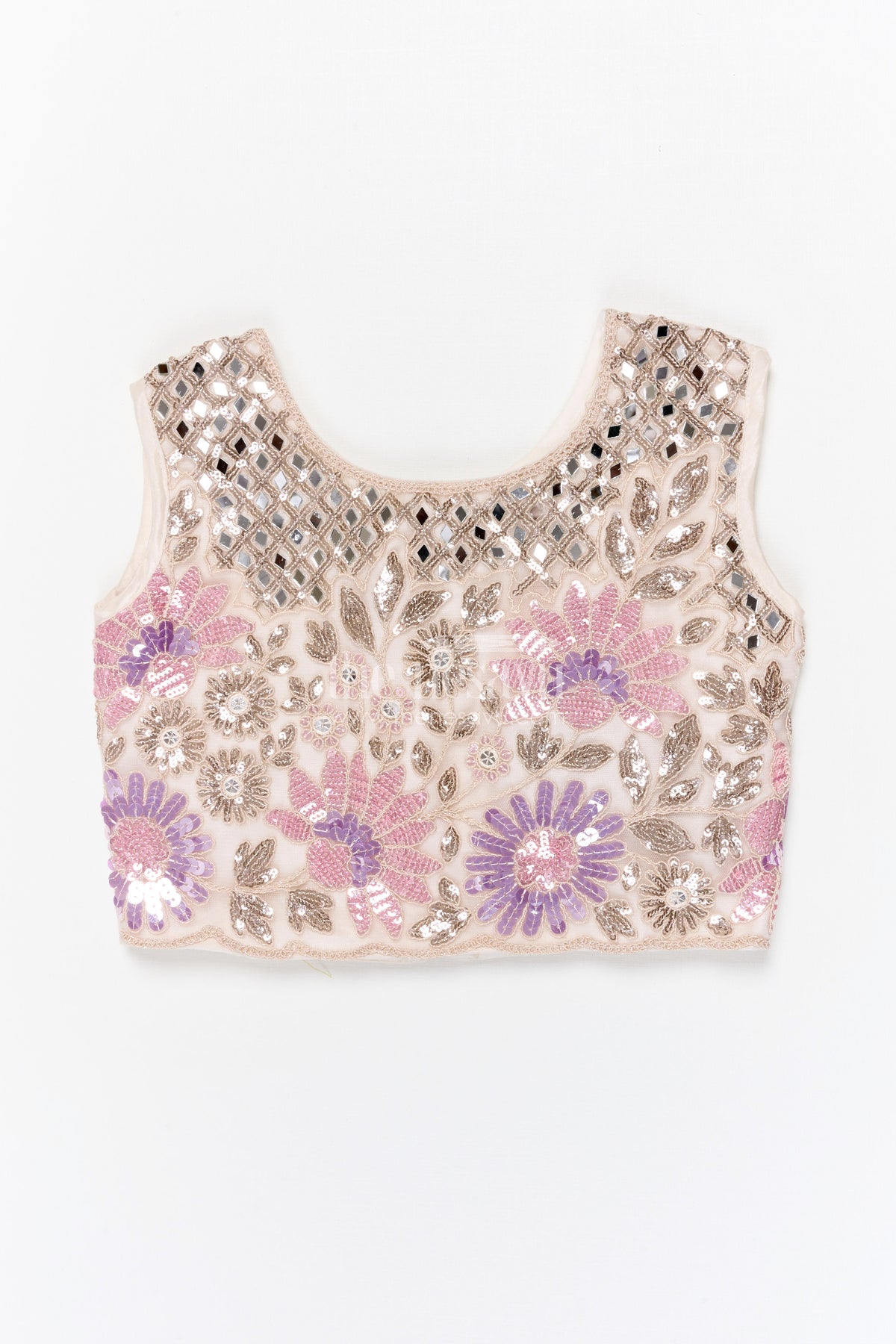 • The sleeveless blouse features intricate floral embroidery that gives a rich festive appeal
