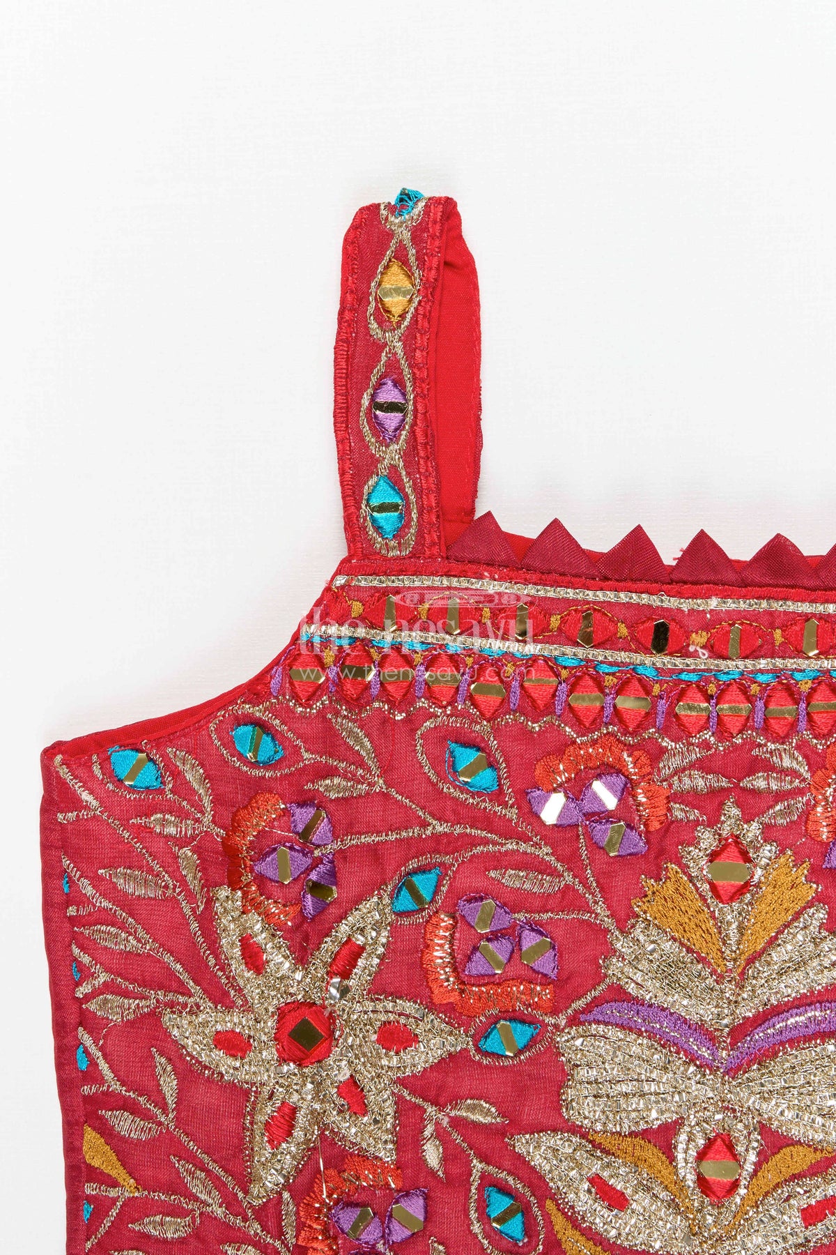 • The designer mirror embroidery on the blouse adds vibrant detailing that enhances the overall ethnic look
