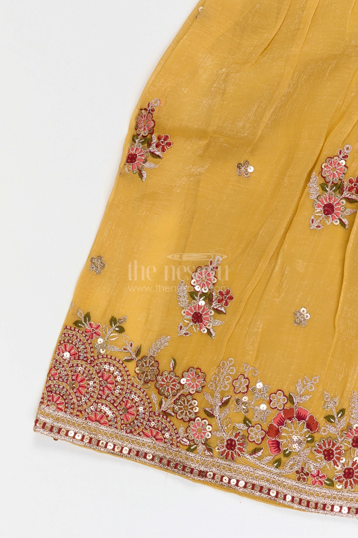 • Detailed embroidery along the hem enhances the overall festive appeal