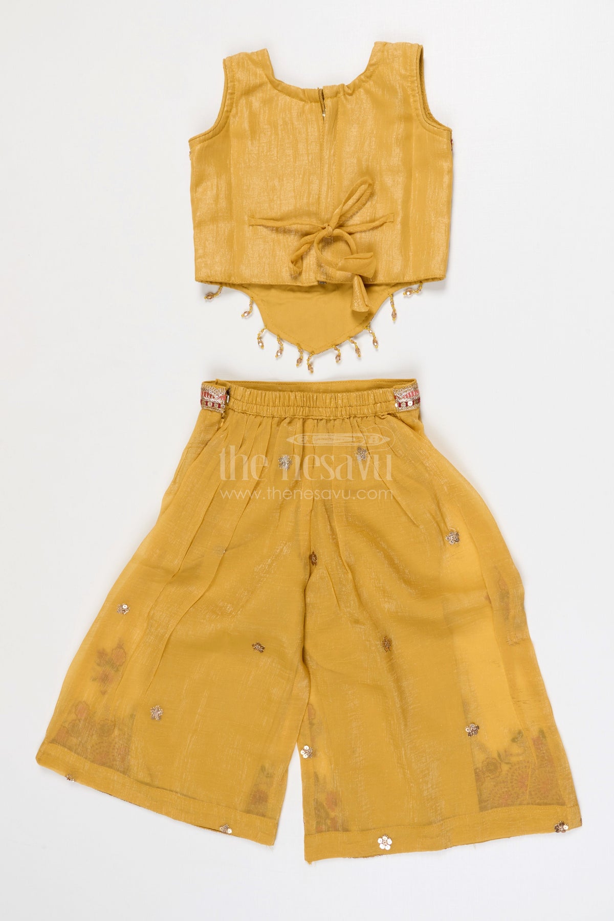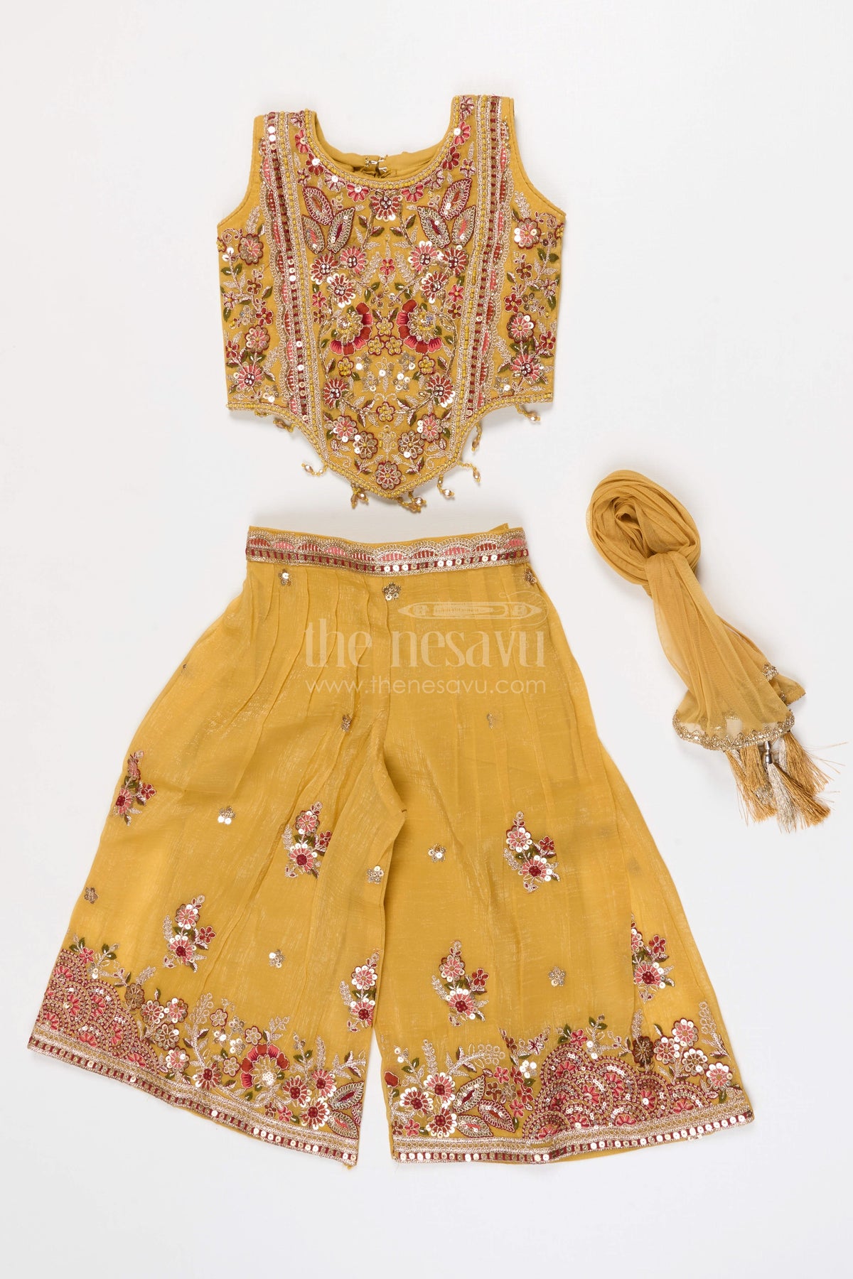 The Nesavu Girls Sharara / Plazo Set Girls Sharara Set for Wedding and Festive Nesavu 18 (2Y) / Yellow / Georgette GPS964A-18 Nesavu Girls Georgette Sharara Set With Designer Embroidered Yoke For Weddings And Festive Occasions