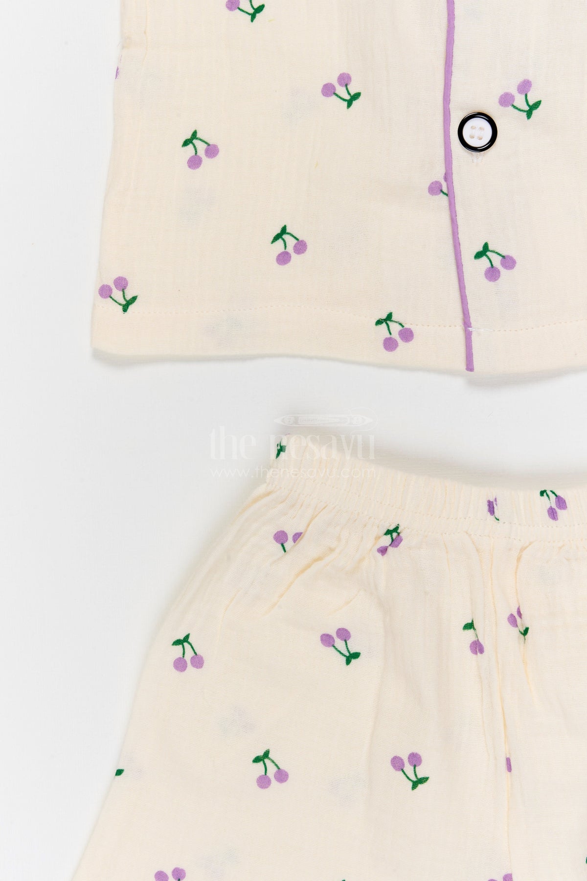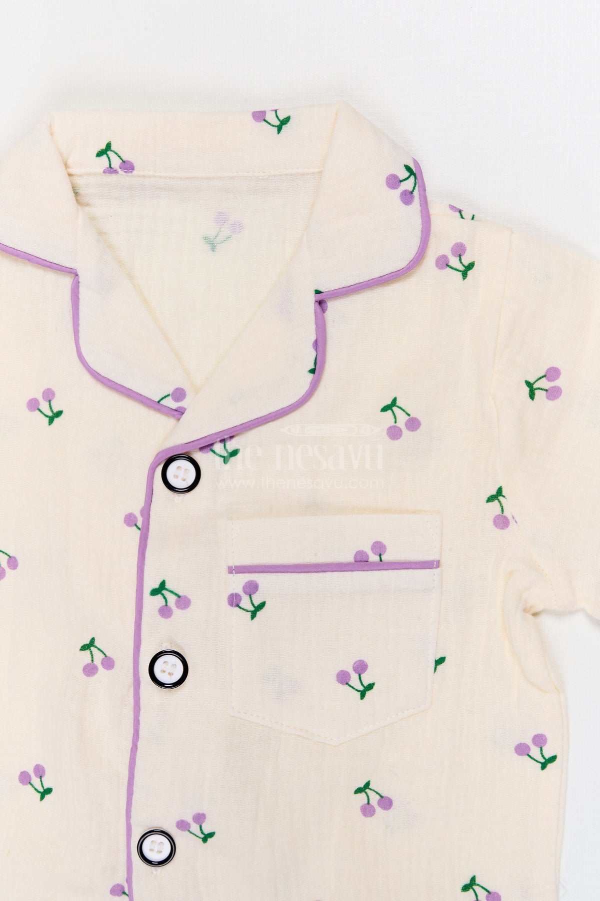 Kids Cotton Night Suit with Cherry Print for Bedtime Comfort