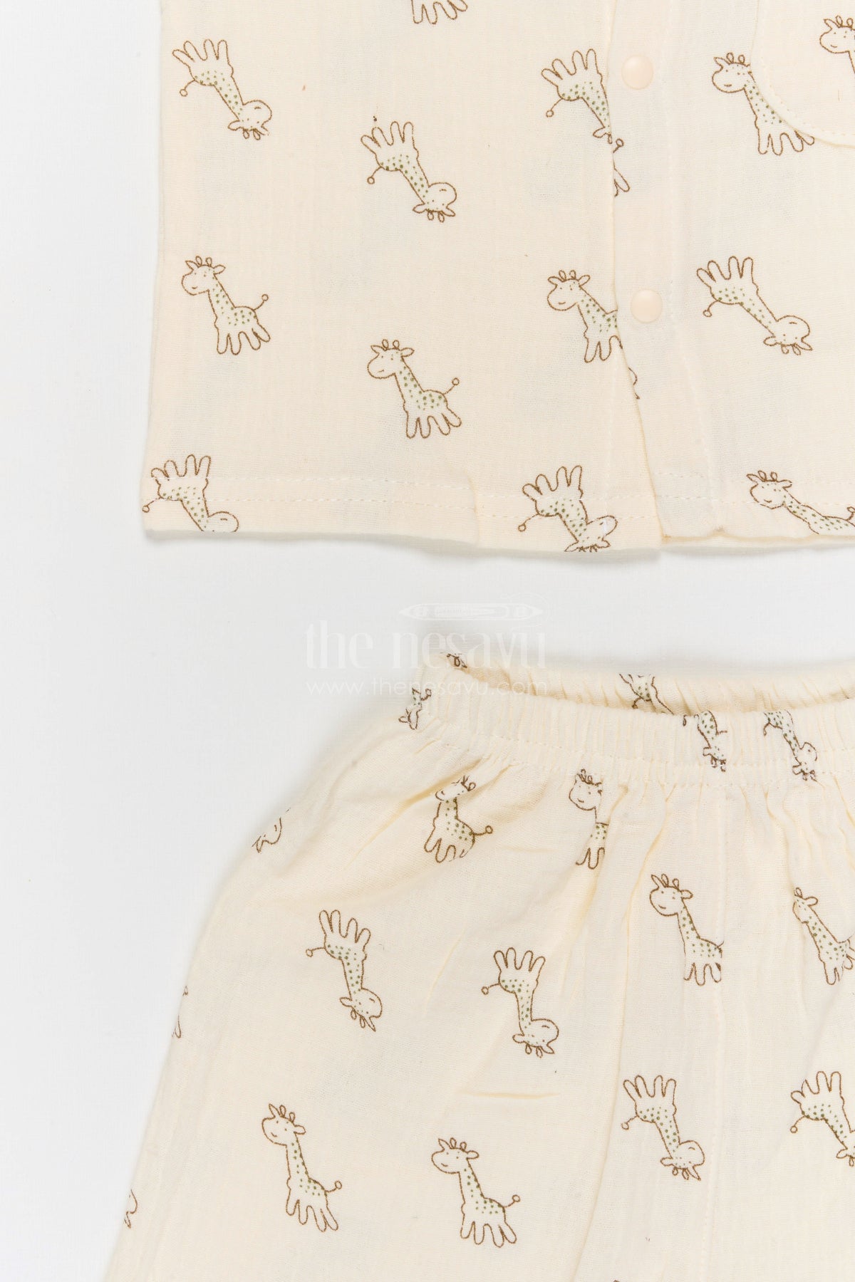 Kids Cotton Night Suit with Giraffe Print for Comfortable Sleep
