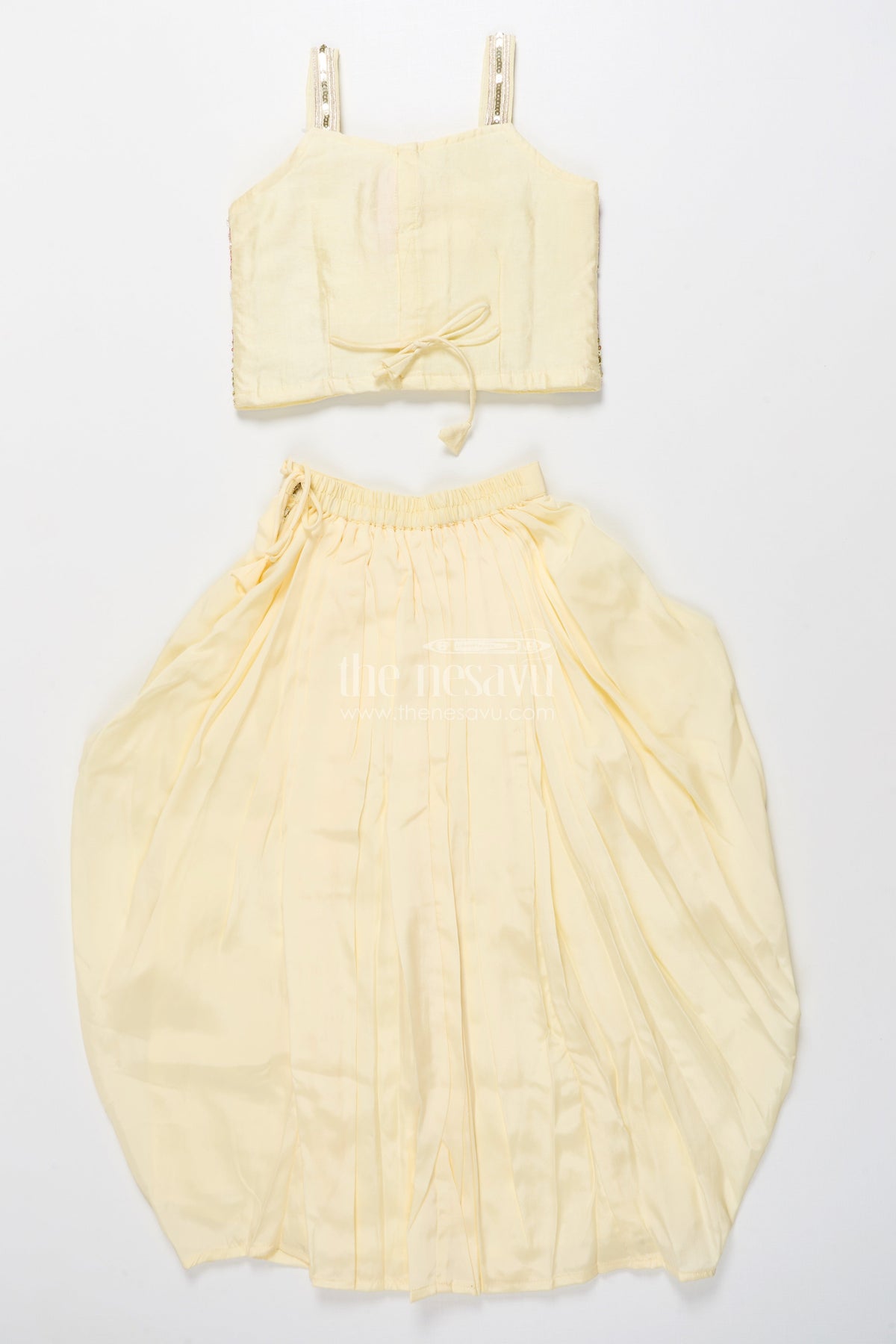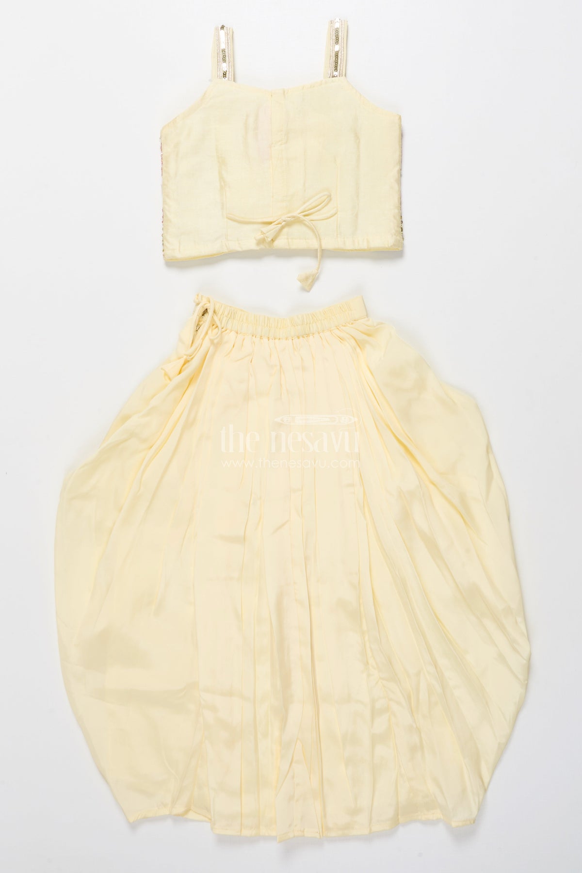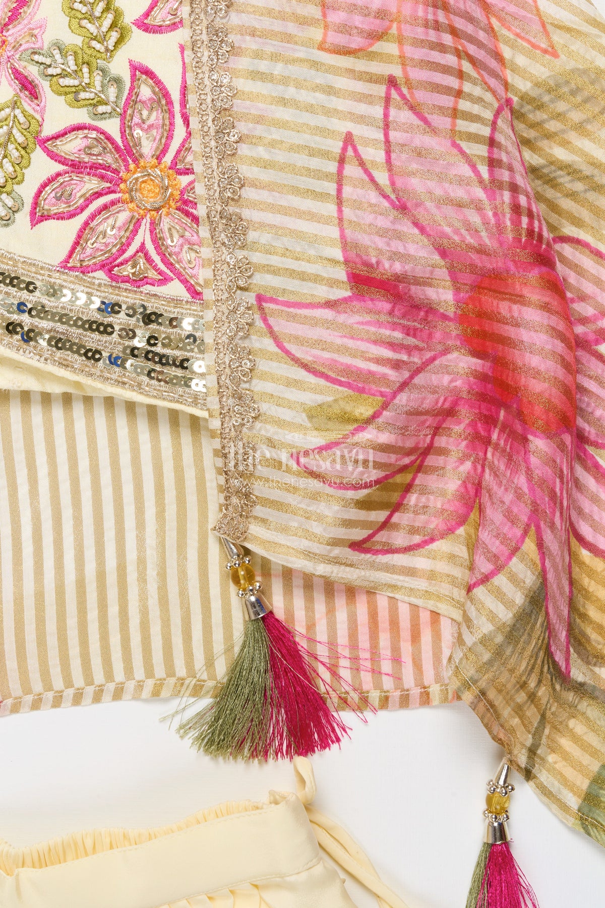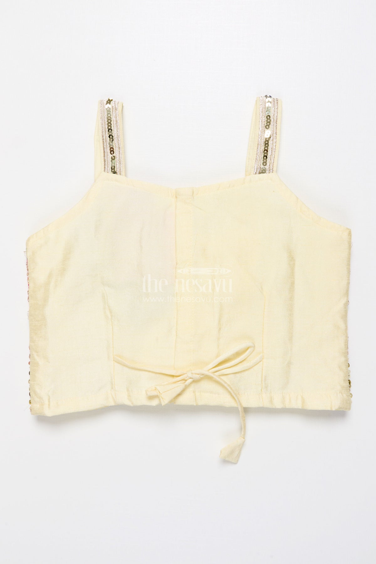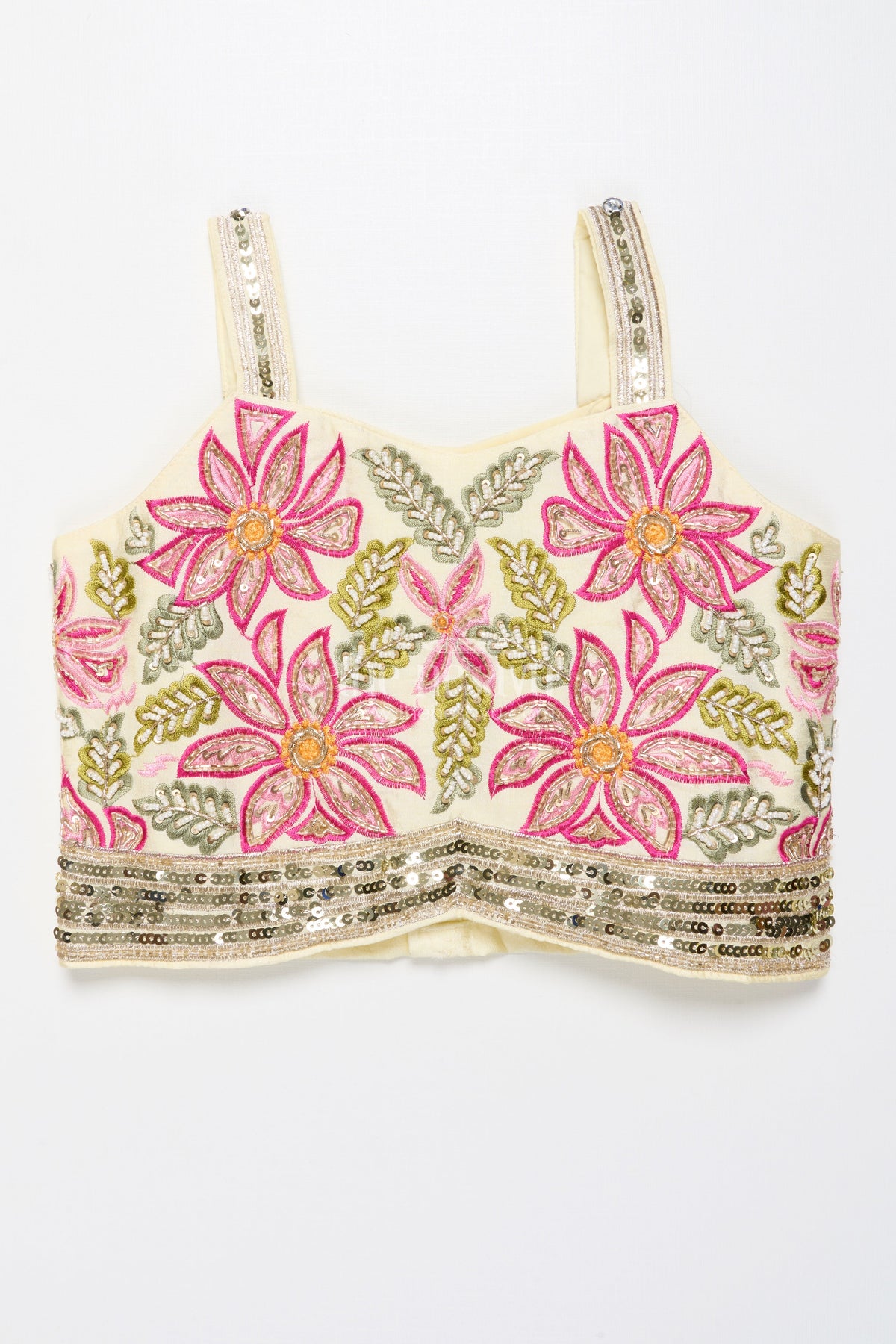 The Nesavu Girls Lehenga Choli Floral Embroidered Lehenga Choli for Girls for Festive Occasions and Family Weddings Nesavu 24 (5Y) / Cream GL840A-24 Nesavu floral embroidered lehenga choli girls muslin silk perfect weddings festive occasions