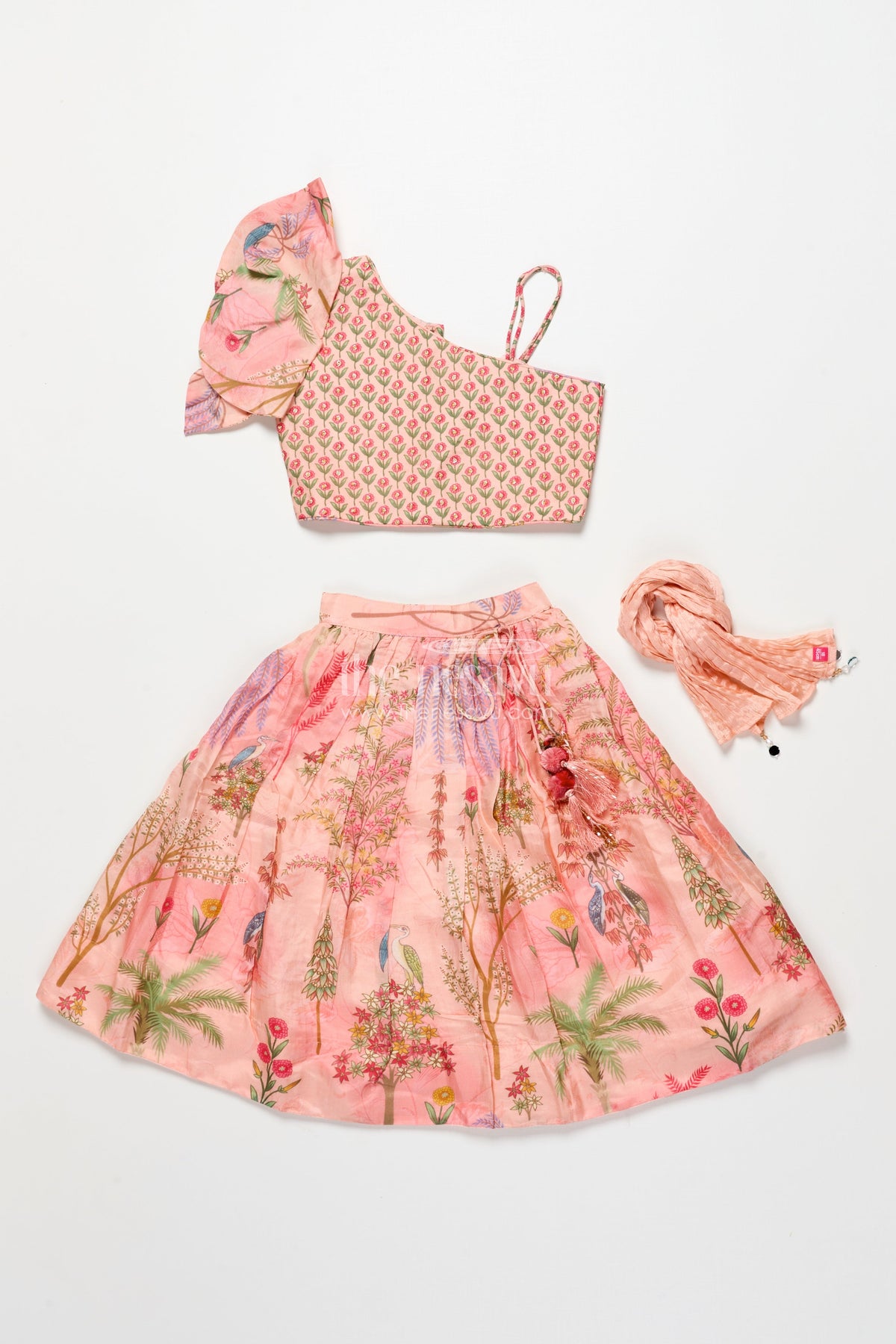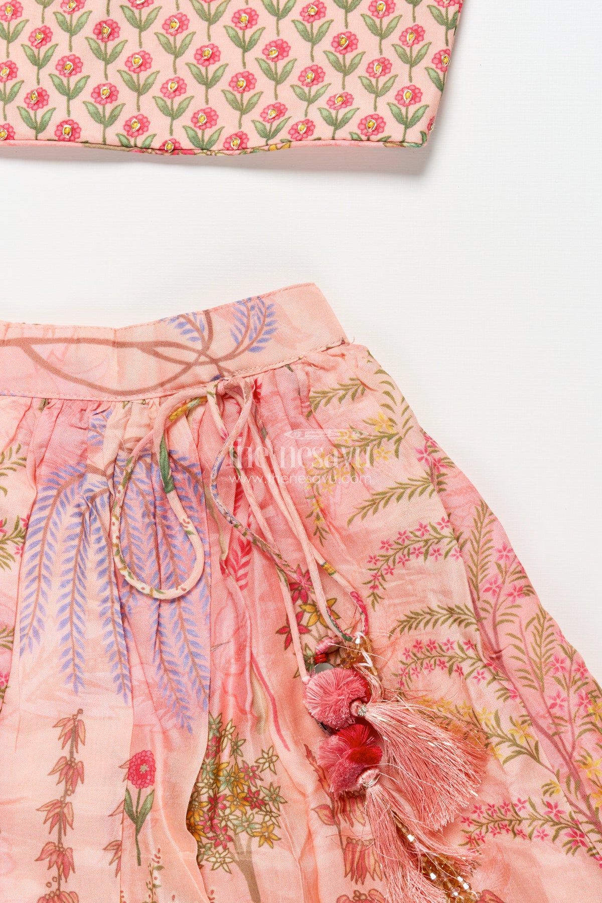 - This kids lehenga choli is crafted from soft viscose silk with digital print for an elegant finish