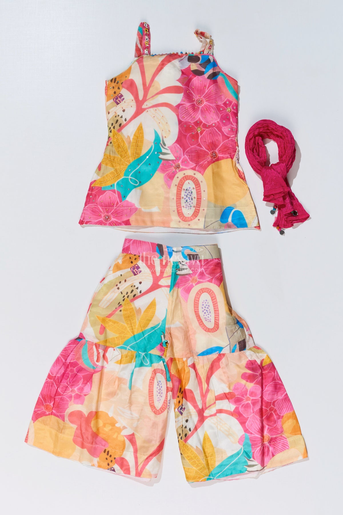 This exquisite muslin kurtis online set is designed to bring elegance and comfort together for your little girl. Crafted from pure muslin silk, this digitally printed kurti features vibrant hues and intricate patterns, making it a perfect choice for festive occasions and family gatherings. The kurti comes with a stylish sharara pant, ensuring a graceful silhouette while allowing ease of movement. The soft, breathable muslin fabric keeps your child comfortable throughout the day. The rich digital print adds a contemporary flair to the traditional design, making it an eye-catching ensemble. Whether it’s a wedding, festival, or cultural event, this girls’ sharara set exudes sophistication and charm. Complete the look with matching accessories and traditional footwear for a standout festive outfit.