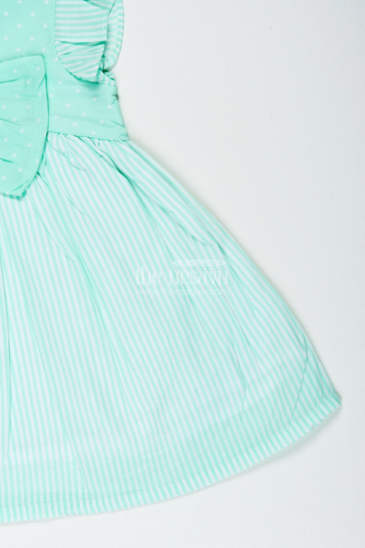 - Dotted yoke and striped skirt add a fun, cheerful vibe