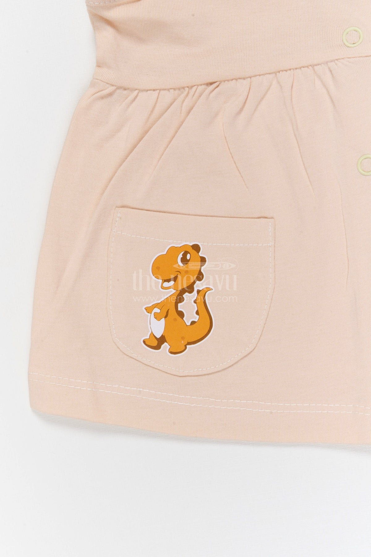 - Design: Snap button frock with patch pockets
