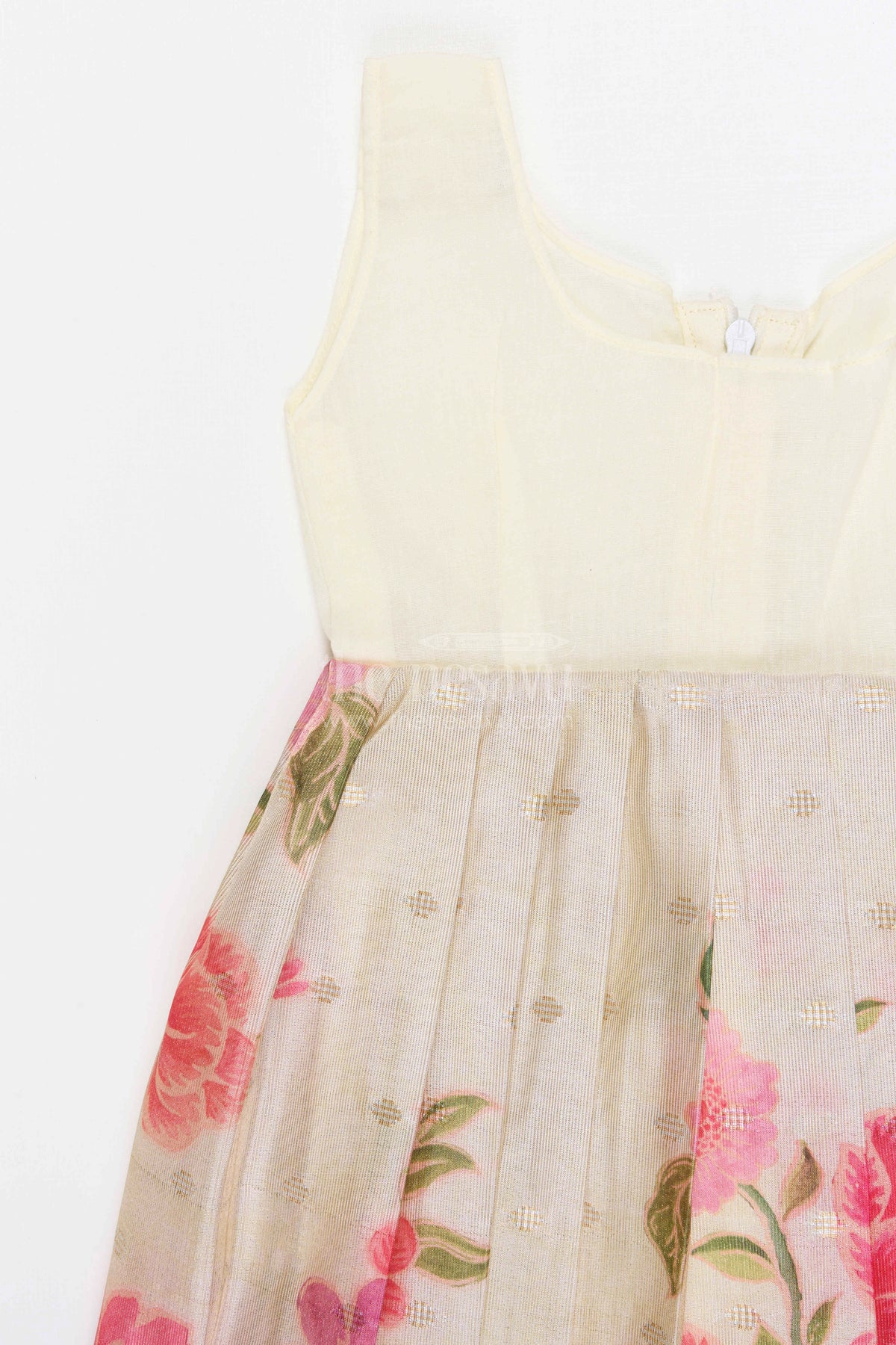 The Nesavu Pattu Pavadai Baby Girl Pattu Pavadai for Festive Occasions and Family Weddings Nesavu 18 (2Y) / Half white / Banarasi GPP370A-18 Nesavu Baby Girl Pattu Pavadai Semi Banaras Silk Dress For Weddings And Festivals