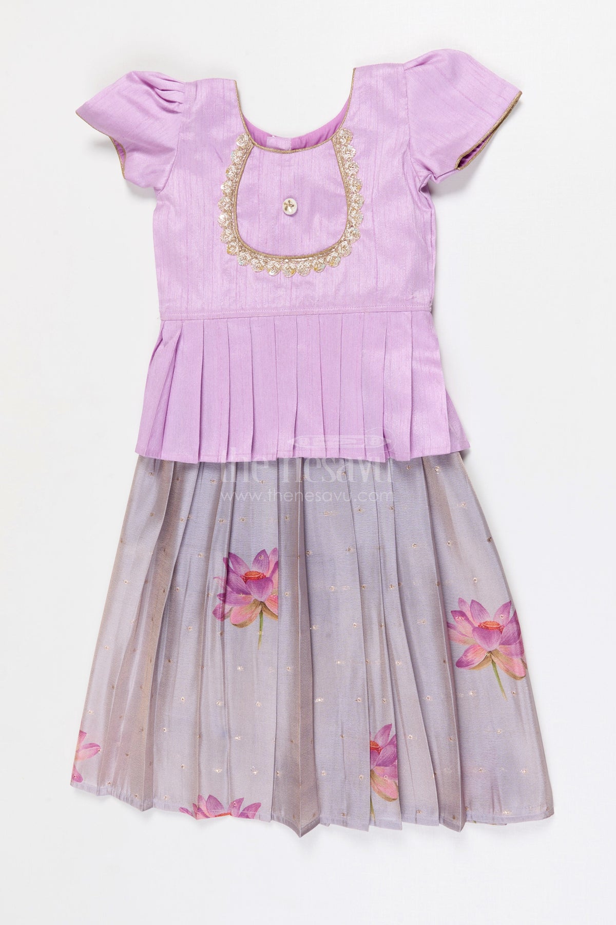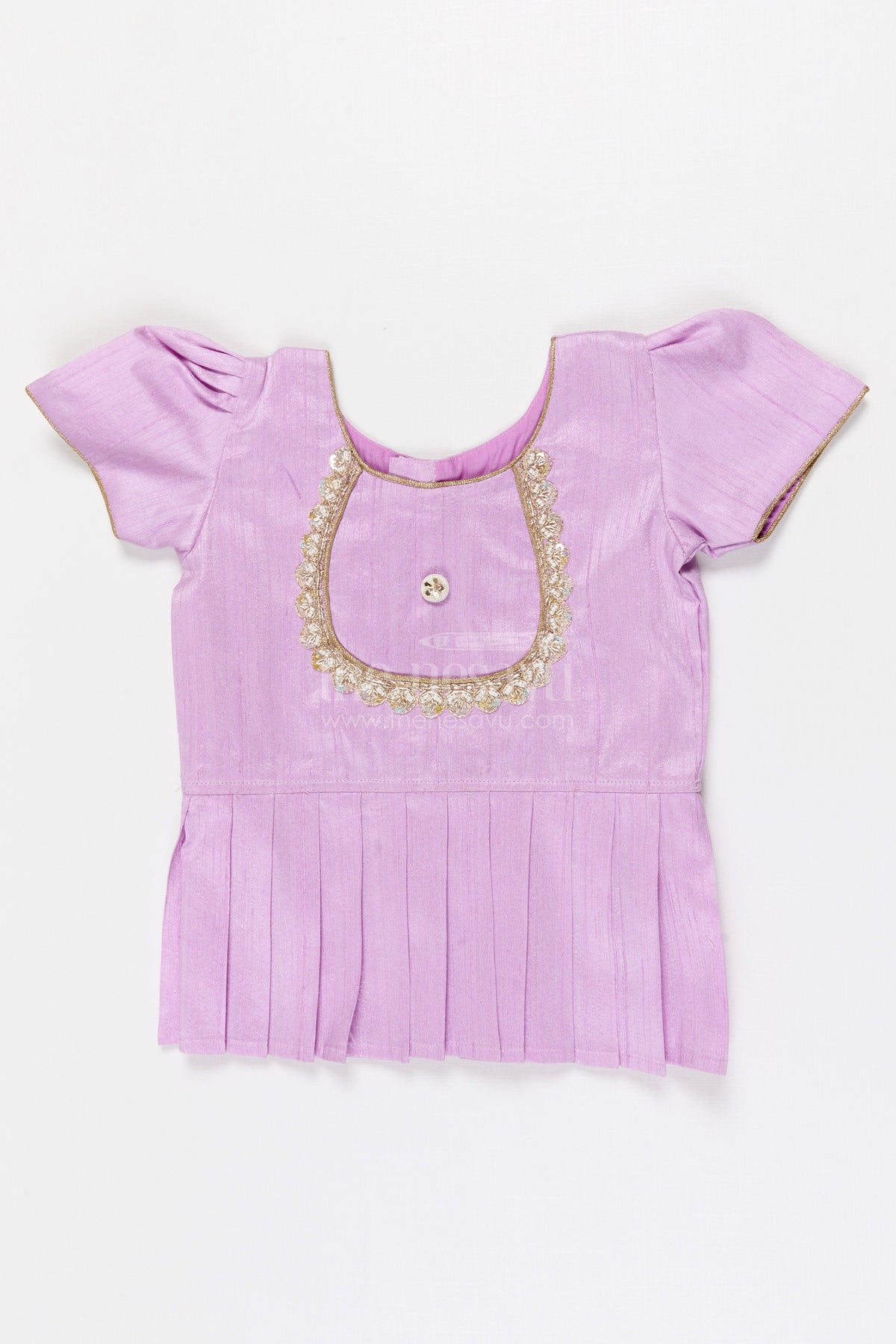 This baby girl pattu pavadai for traditional functions is thoughtfully designed for special family moments