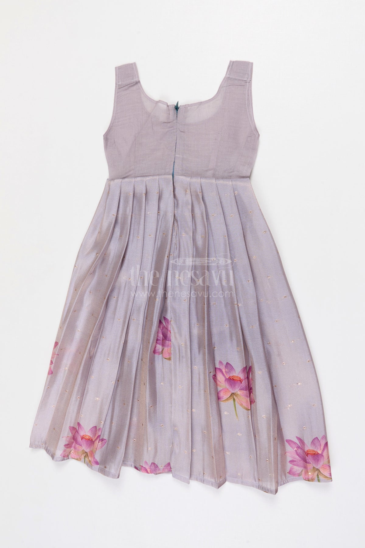 The flared skirt with subtle floral detailing adds movement and festive charm