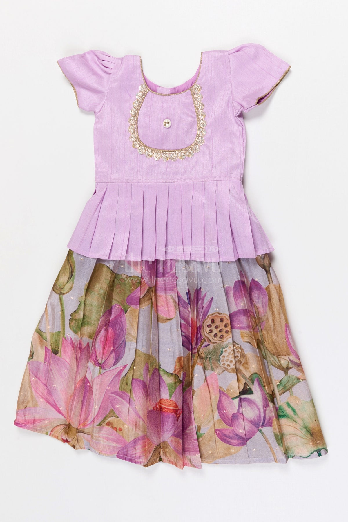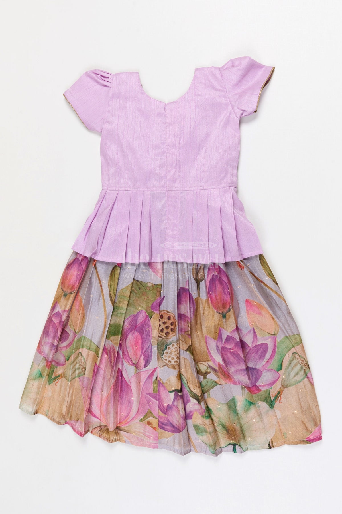 • Design: Lace neckline detail, Pleated peplum waist, Floral printed flared skirt