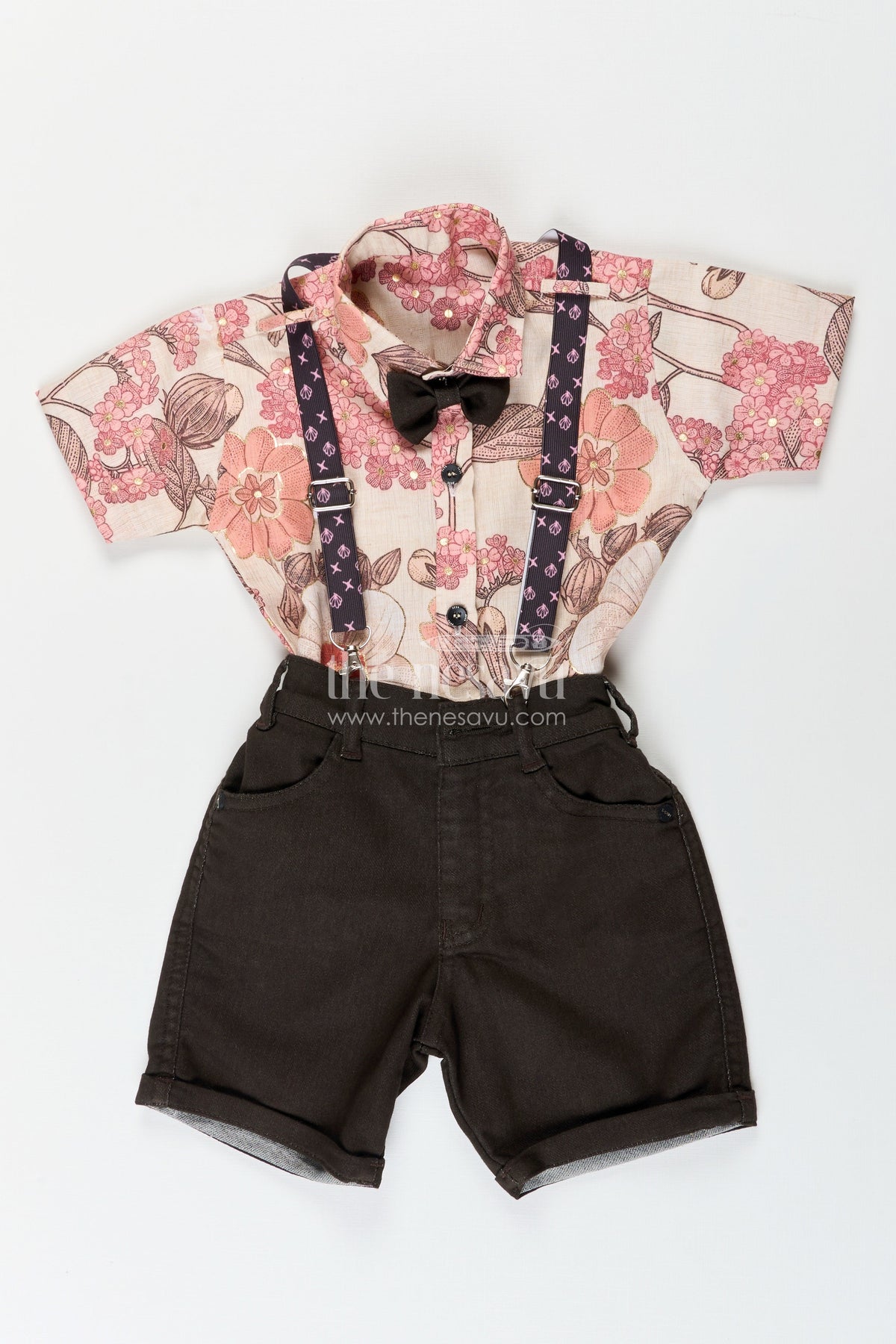 The Nesavu Boys Casual Set Boys Floral Suspender Outfit for Casual Parties and Outings Nesavu Nesavu boys floral casual outfit suspenders bow tie outings parties