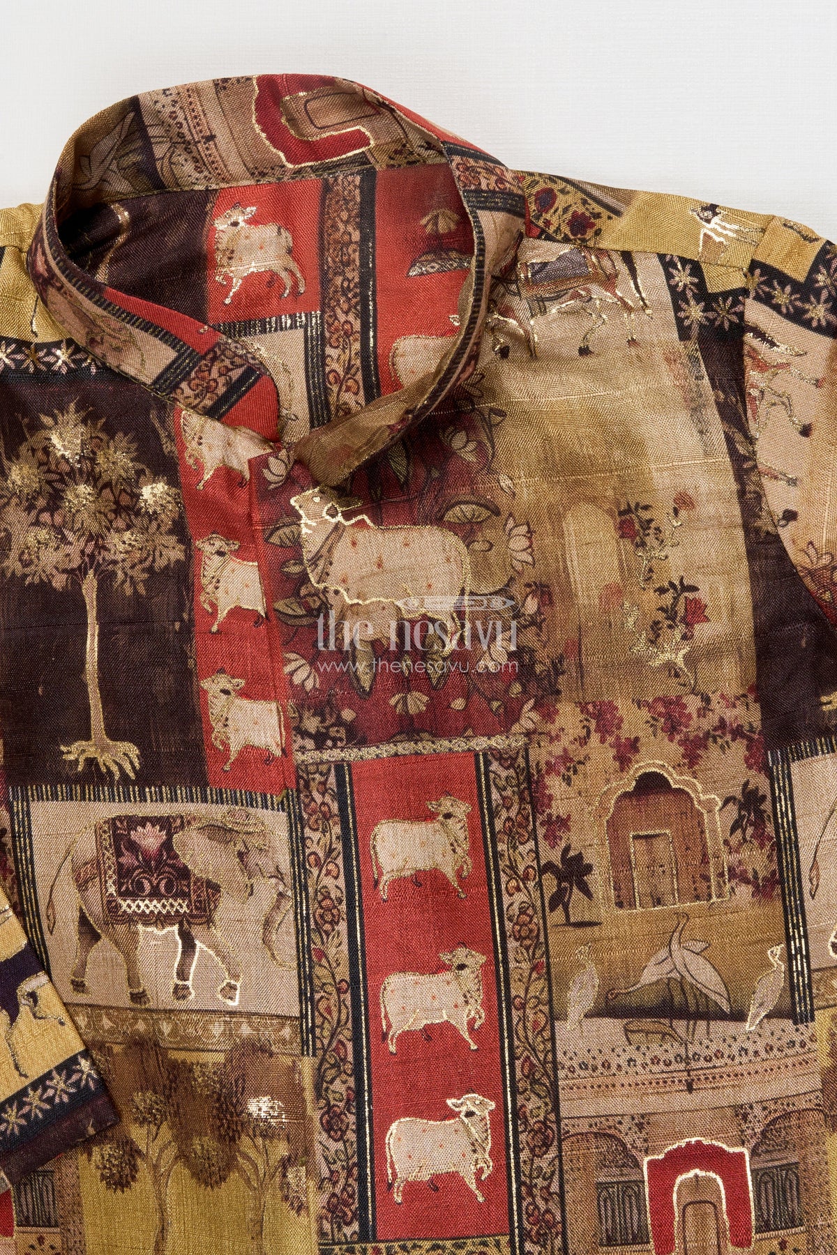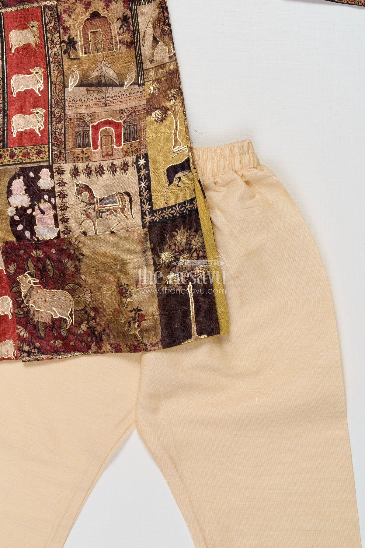 The Nesavu Boys Kurtha Set Boys Foil Print Kurta Set for Ethnic Functions and Birthdays Nesavu Nesavu boys foil print kurta set blended silk birthday parties traditional functions