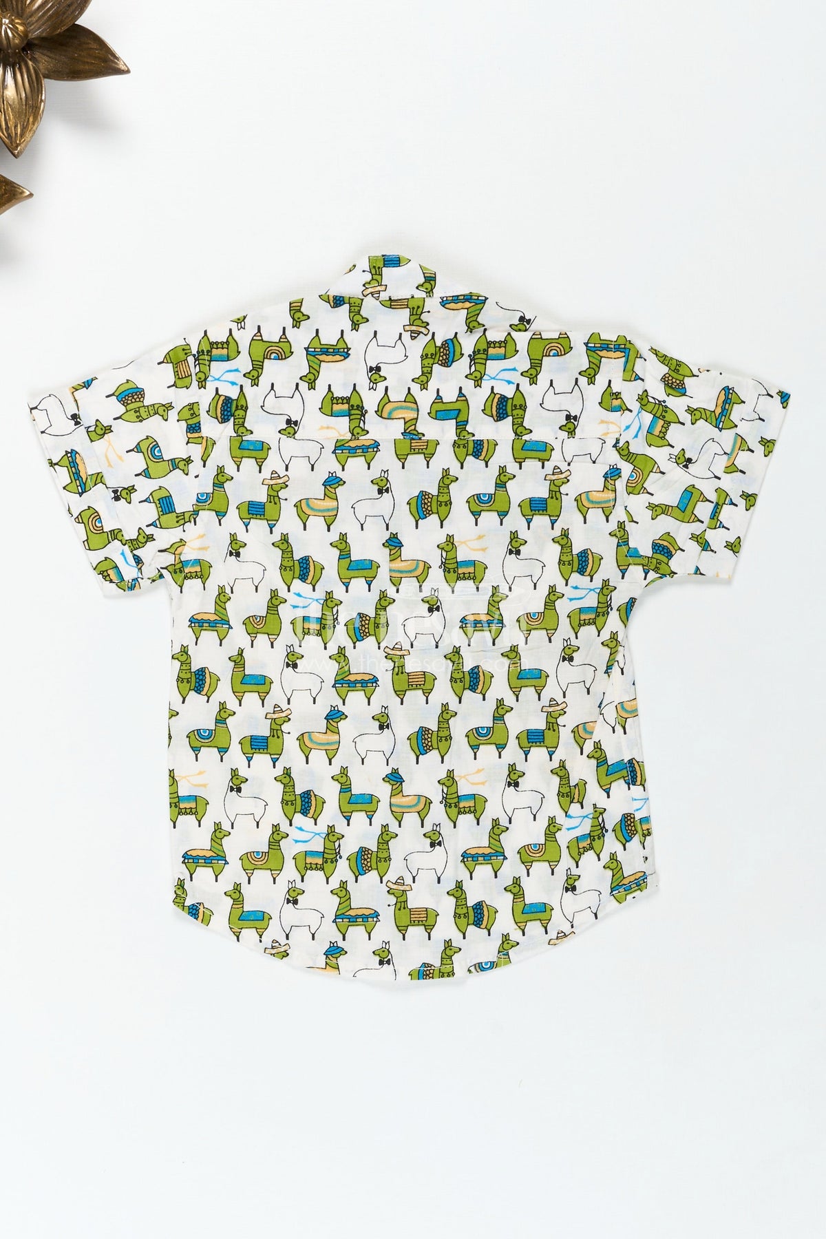 The Nesavu Boys Cotton Shirt Jungle Theme Animal Print Shirt for Boys Lightweight Summer Wear Nesavu 16 (1Y) / White BS280A-16 Nesavu Cotton Summer Shirt Boys Leafy Jungle Theme Playful Green Animal Digital Print