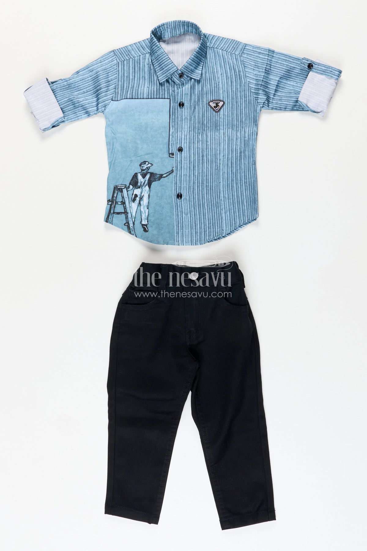 Boys Printed Cotton Casual Set with Jeans-Style Trousers Everyday Smart Wear