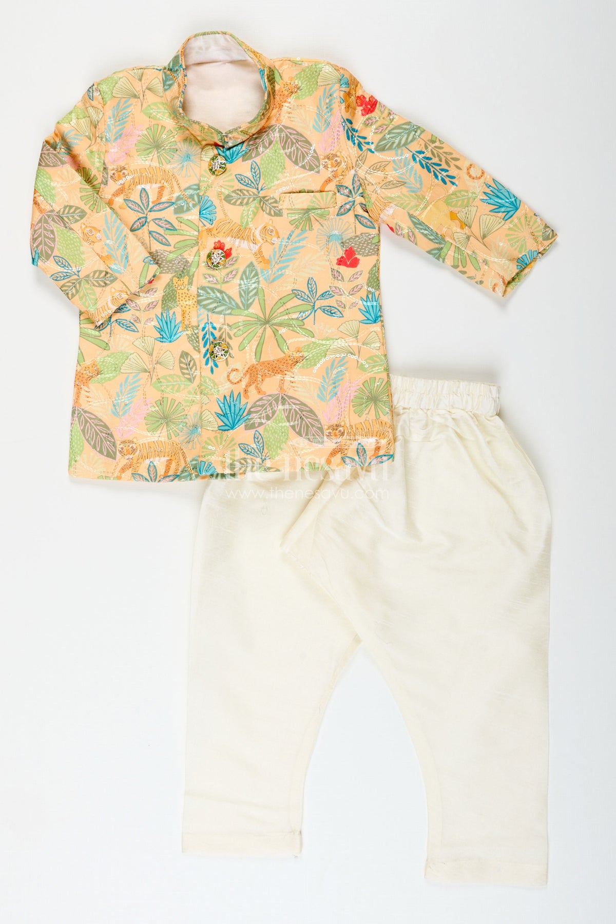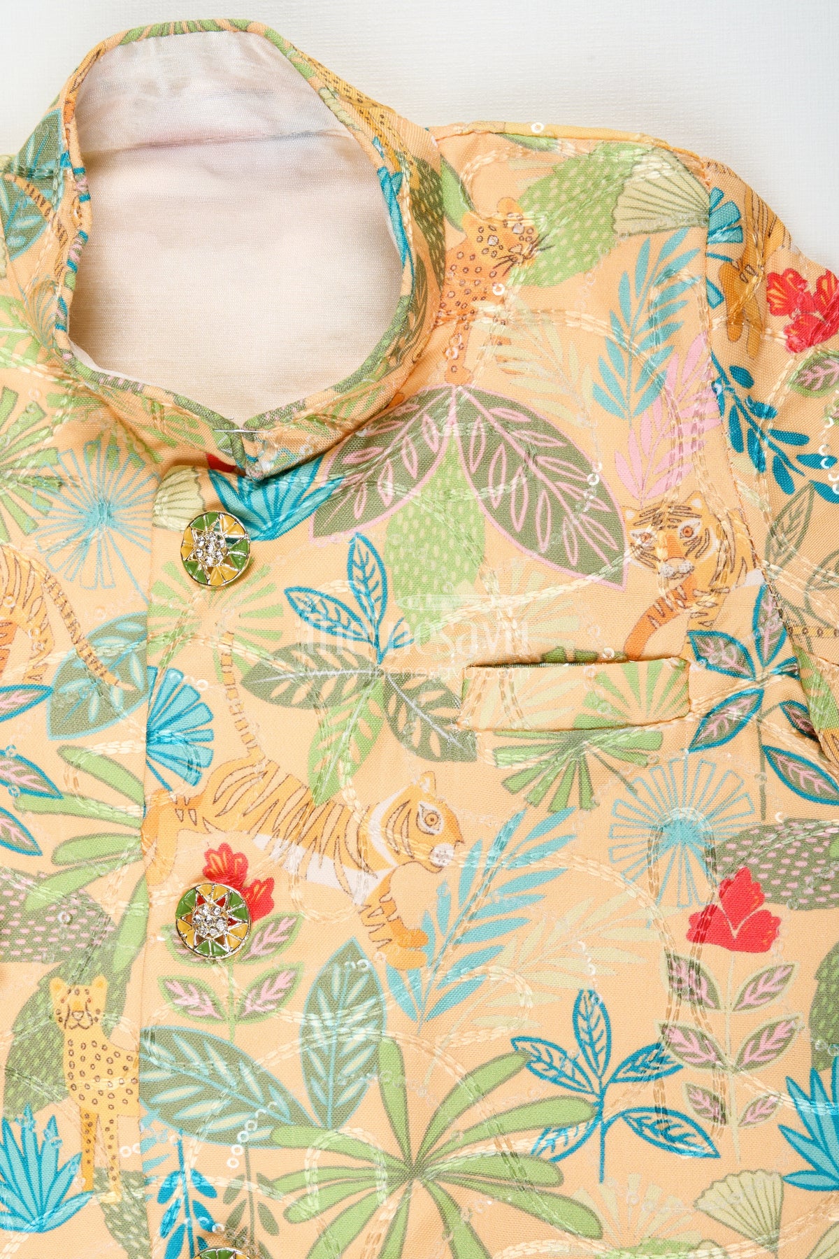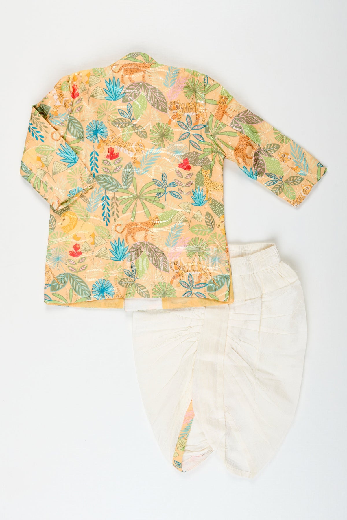 • Design: Jungle-themed digital print, Kurta with buttons, Dhoti pant