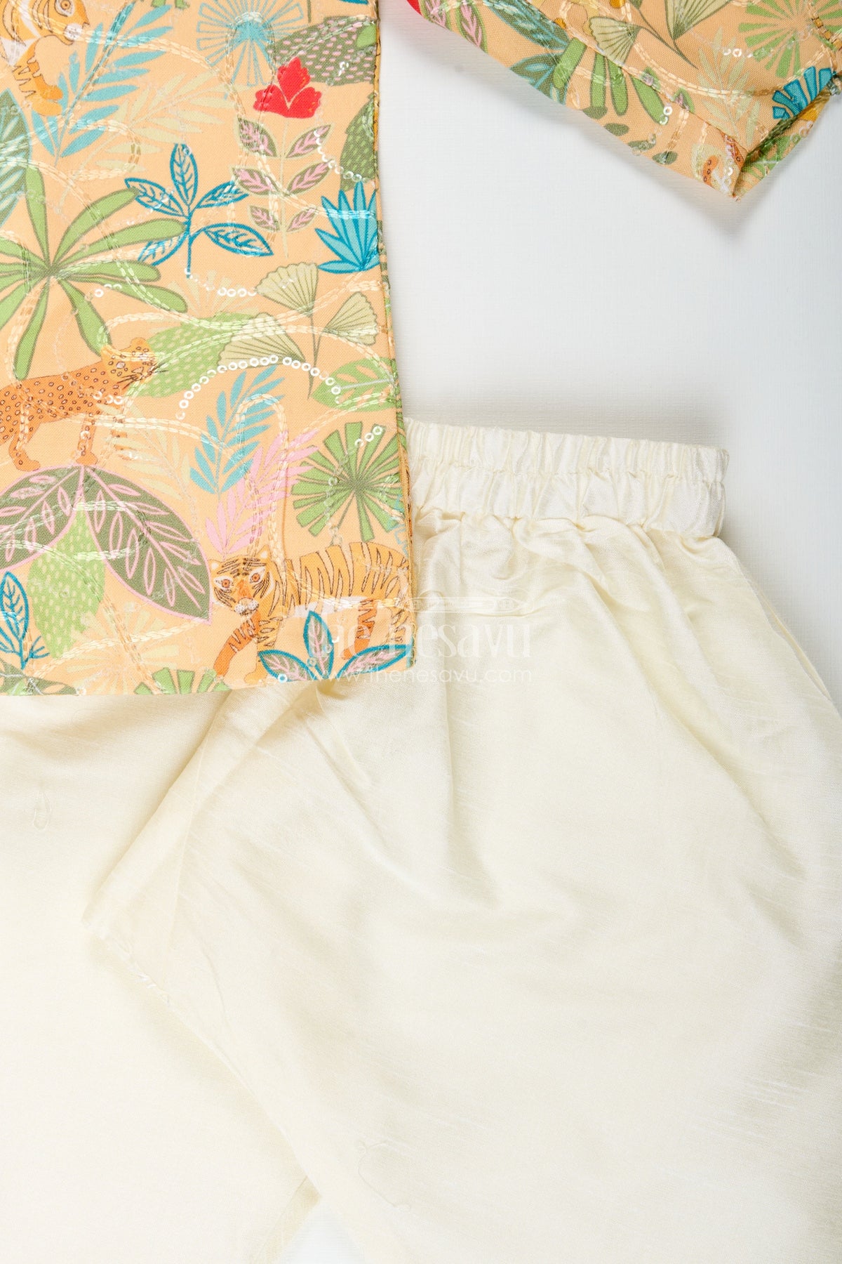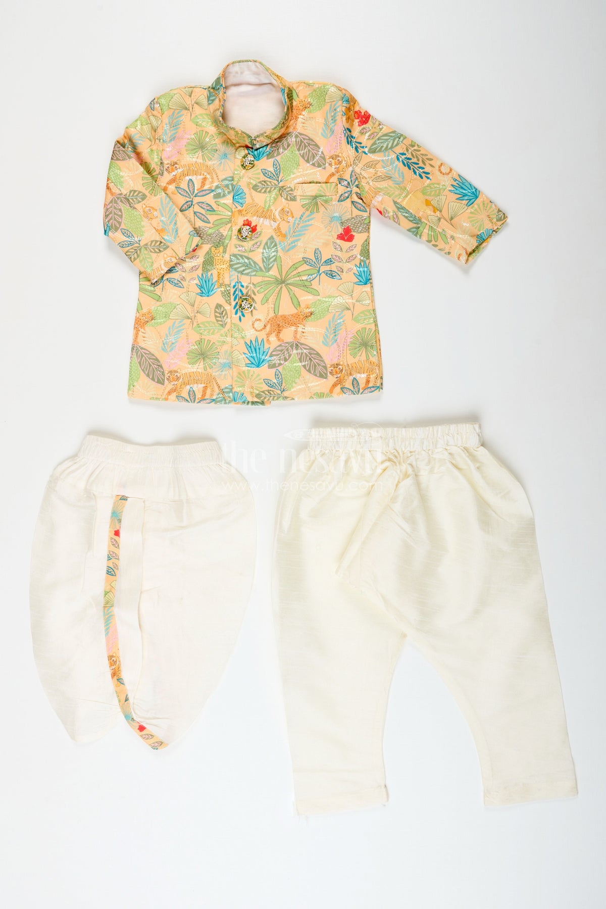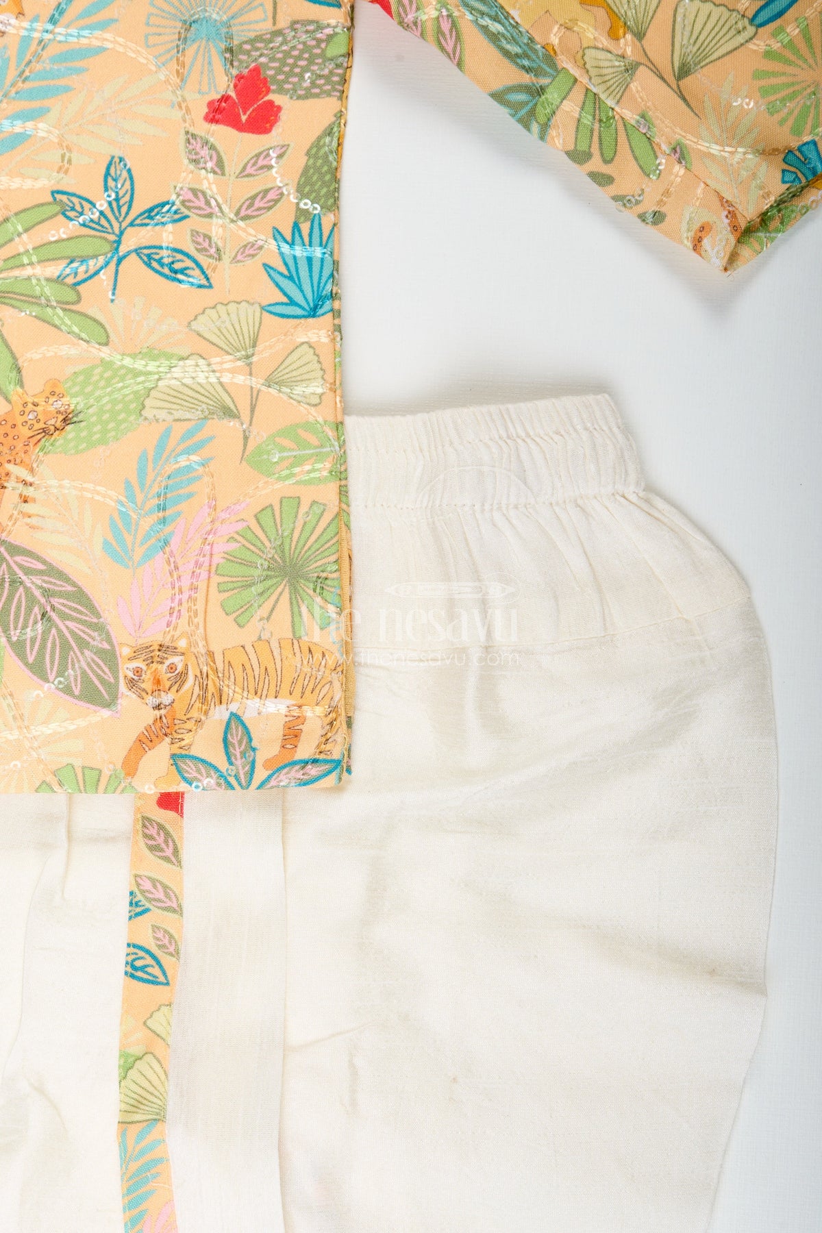 The Nesavu Boys Dothi Set Boys Printed Silk Kurta and Dhoti Set for Festive Family Occasions Nesavu Nesavu boys silk blend kurta dhoti set digital print festivals ceremonies