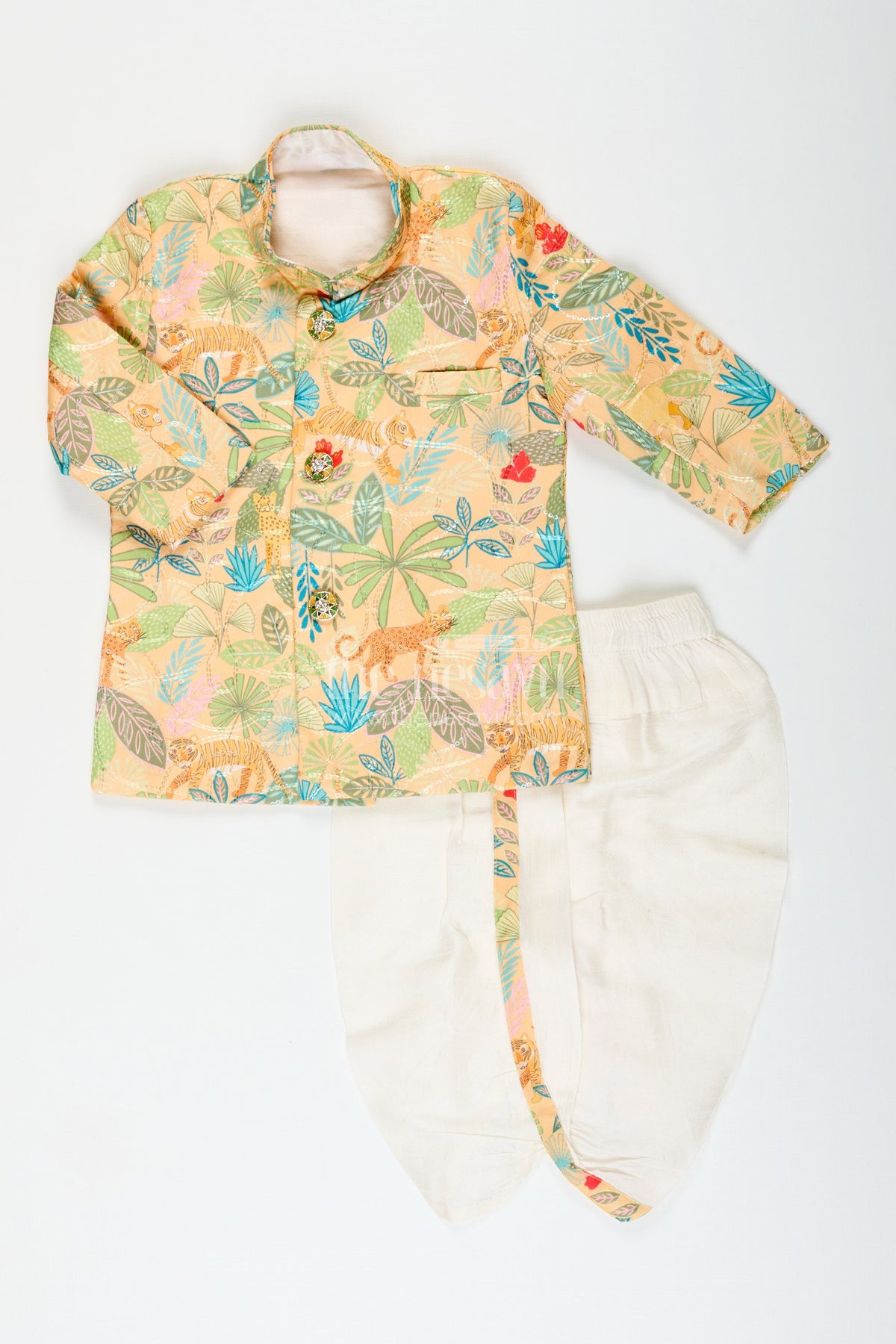 The Nesavu Boys Dothi Set Boys Printed Silk Kurta and Dhoti Set for Festive Family Occasions Nesavu 12 (3M) / Multicolor BES802A-12 Nesavu boys silk blend kurta dhoti set digital print festivals ceremonies