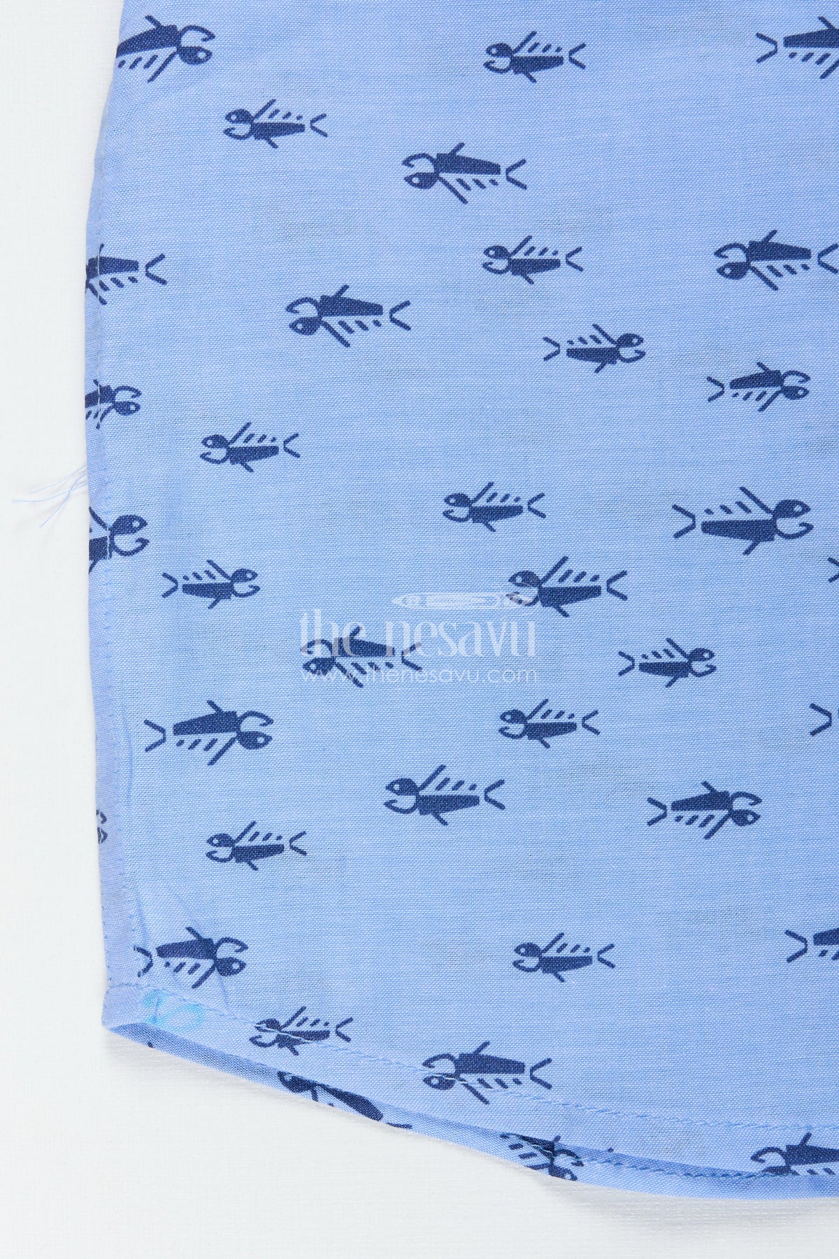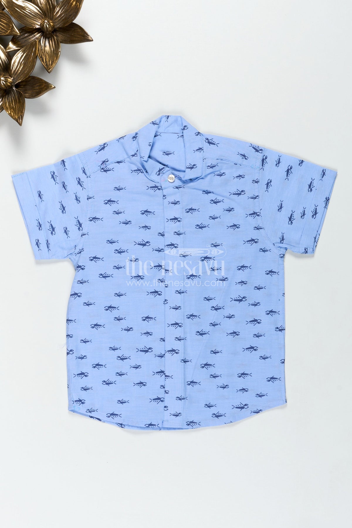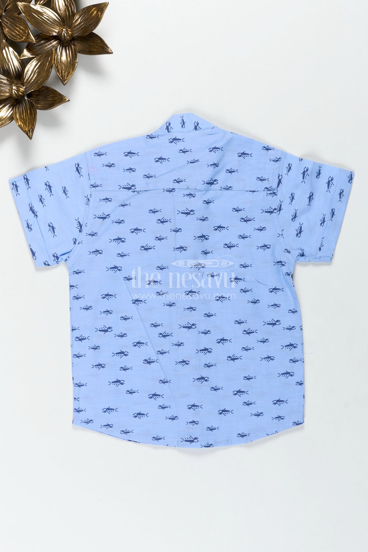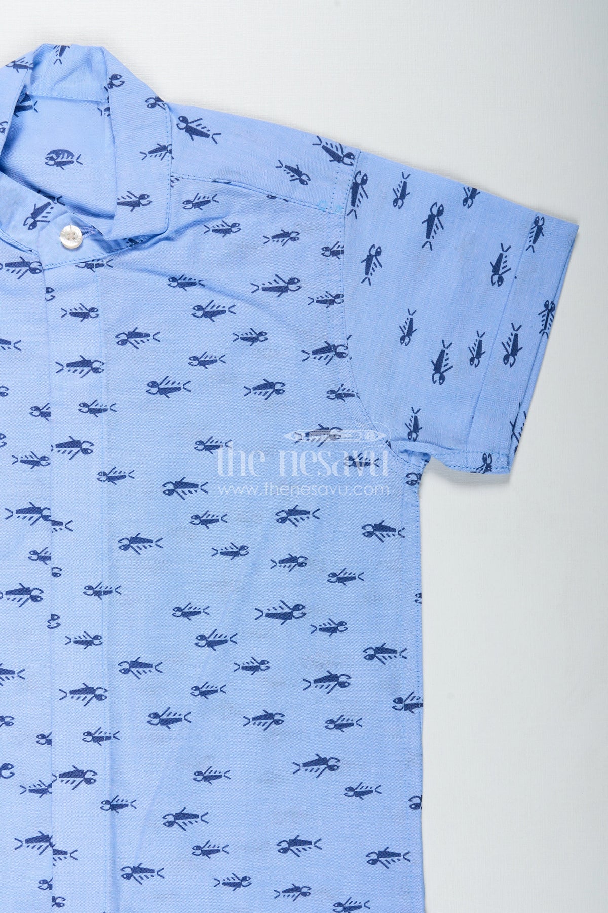 Boys shirt for daytime outings and functions brings subtle charm and all-day ease to your child’s wardrobe. Designed in lightweight cotton with a digital water color floral print, this blue shirt features tiny navy tribal-style motifs that add a playful yet refined edge. Its short sleeves and mandarin collar offer a modern silhouette, while the breathable fabric ensures cool comfort during outdoor events or semi-formal gatherings. The button-down design makes dressing quick and easy, and the shirt’s versatility allows it to pair well with both traditional and casual bottoms.