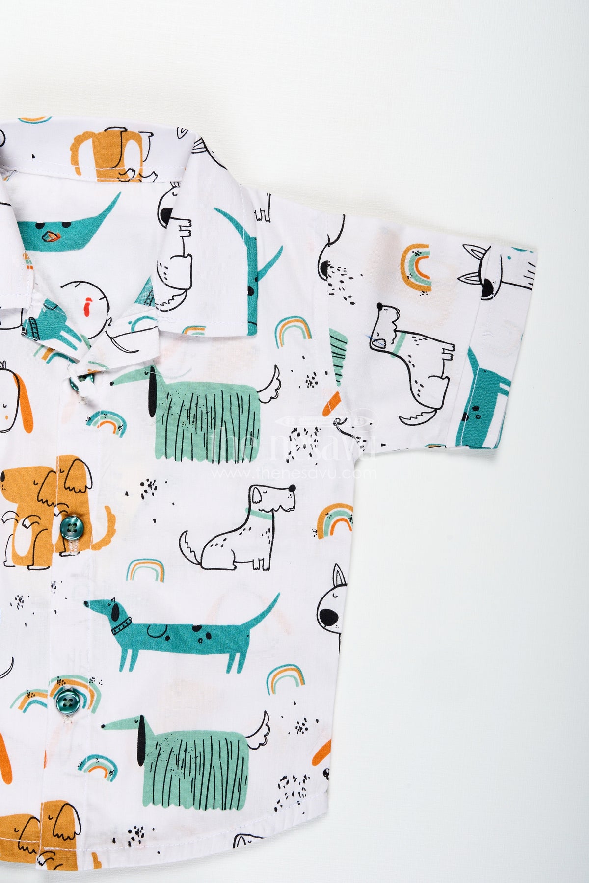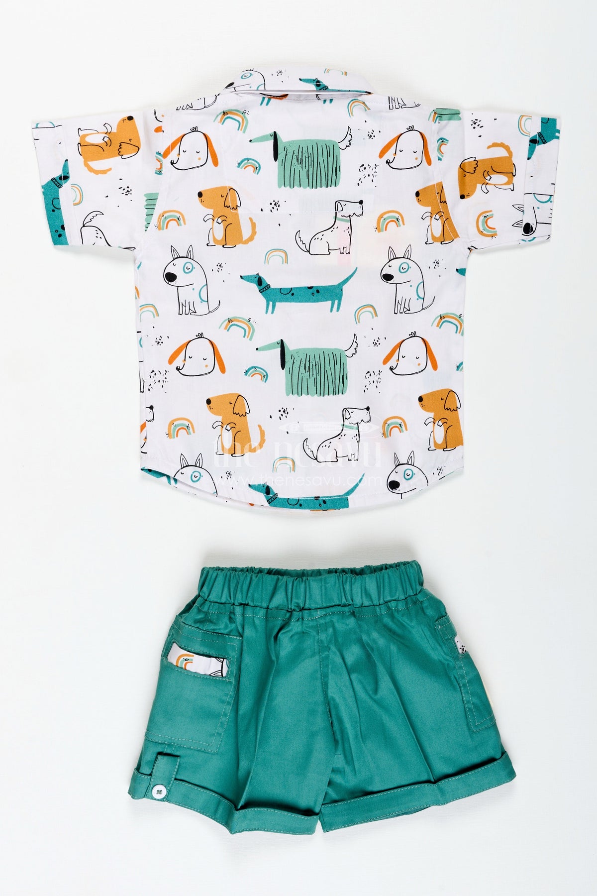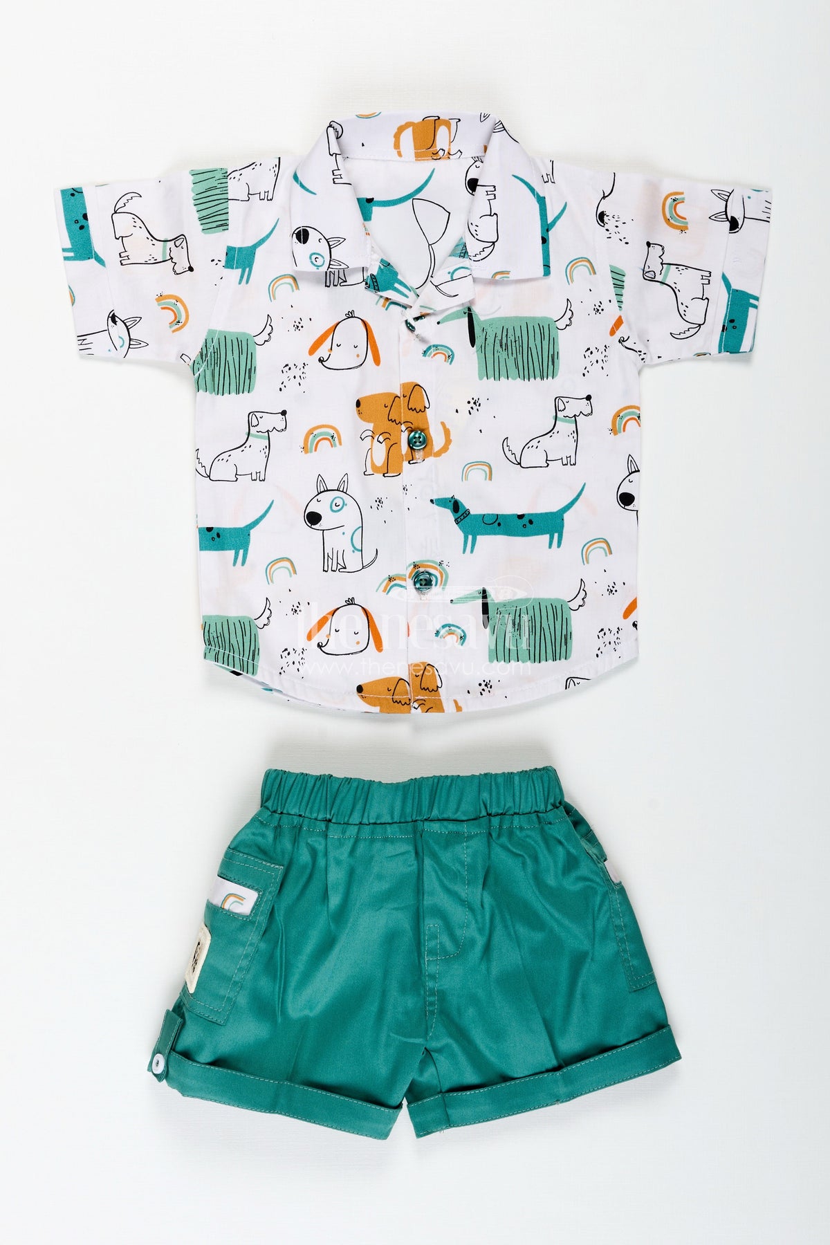 The Nesavu Boys Casual Set Toddler Boy Cotton Outfit with Animal Print for Summer Nesavu 12 (3M) / Green BCS342B-12 Nesavu Toddler Boys Summer Cotton Shirt Shorts Set Animal Print Breathable Fabric